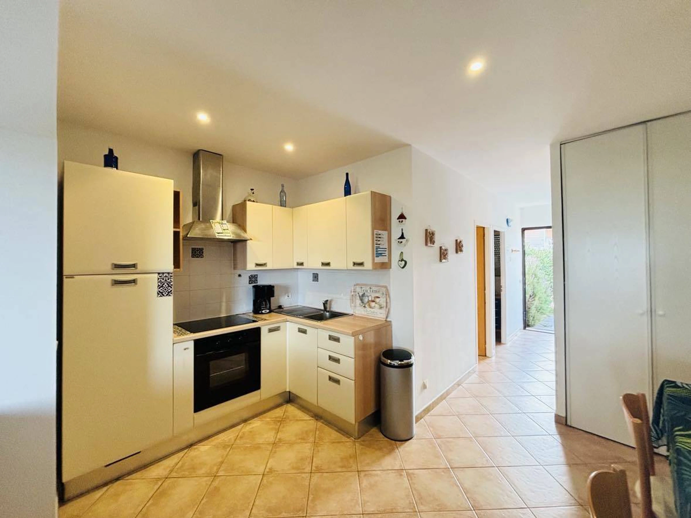 Die Wohnung im Erdgeschoss besteht aus einer ausgestatteten Küche, einem klimatisierten Wohnzimmer mit einem Schlafsofa, einem Badezimmer, einem ersten Schlafzimmer mit einem Doppelbett und einem zweiten Schlafzimmer mit Etagenbett.