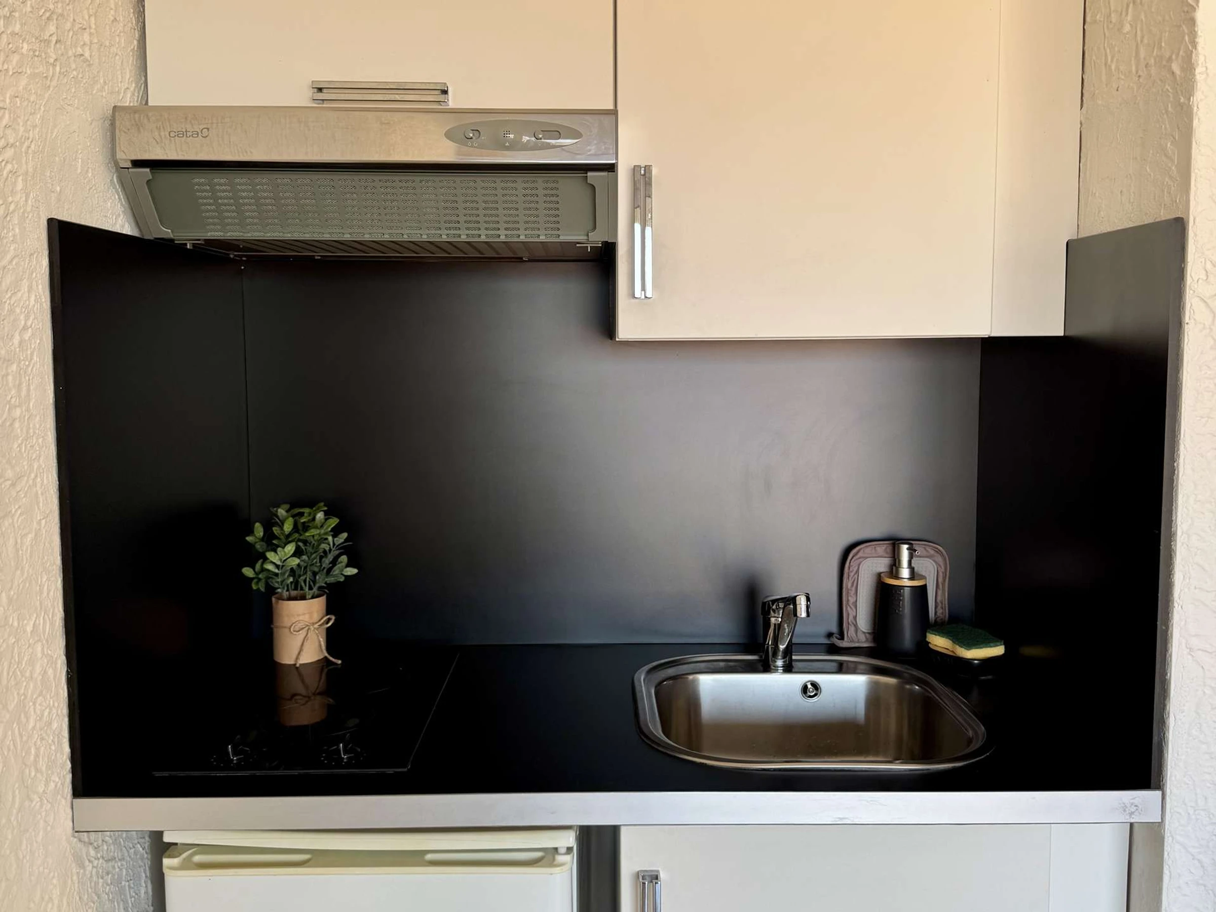 Das Studio besteht aus einem Wohnzimmer mit Schlafsofa und Zustellbett, einer Küchenzeile, einem Badezimmer mit WC und einer Terrasse.