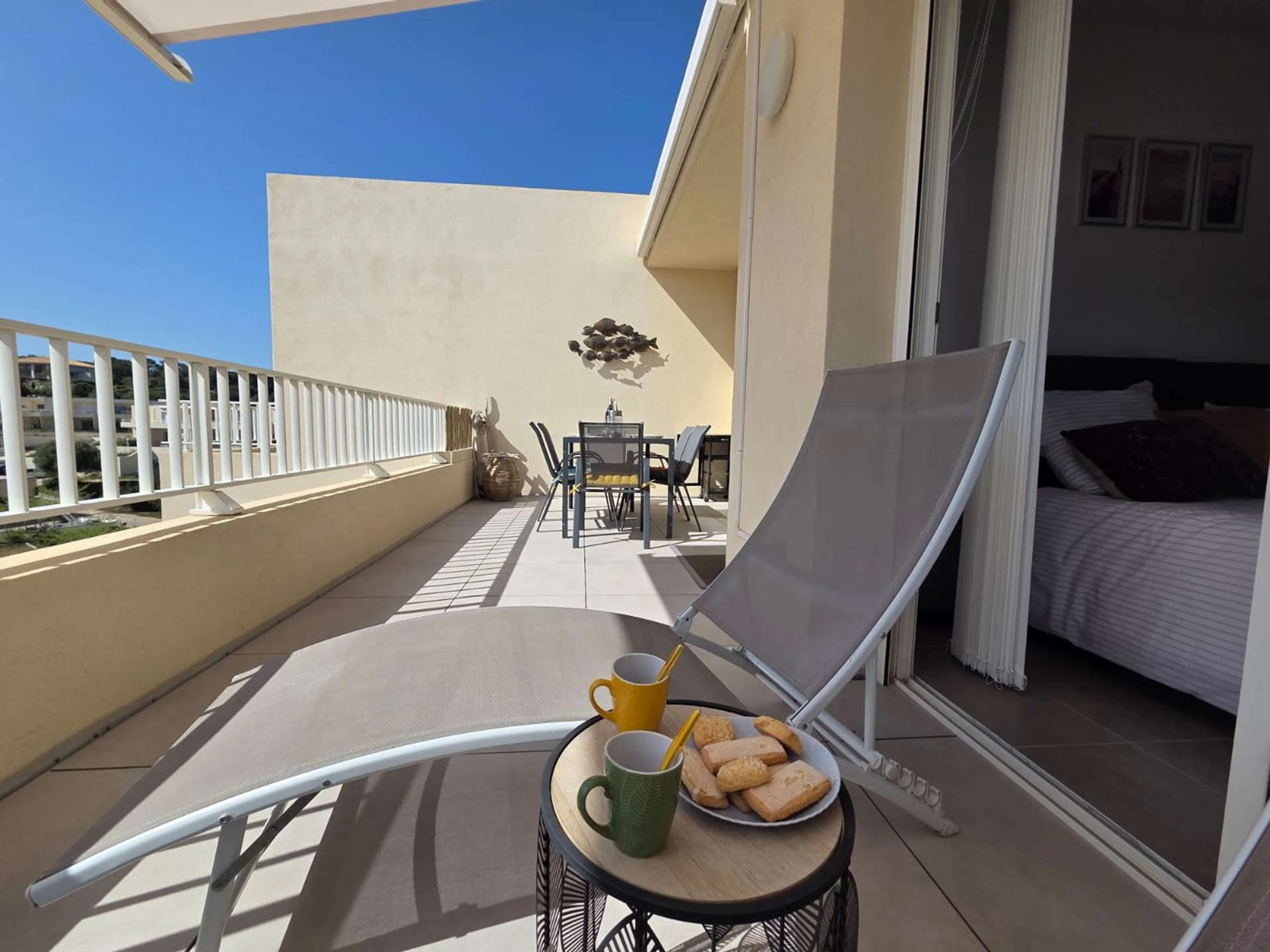 Das Highlight dieser Wohnung: ein herrlicher Blick auf den Yachthafen. Zur Ausstattung gehören zwei überdachte Terrassen und ein Parkplatz. Die Wohnung ist vollklimatisiert.
