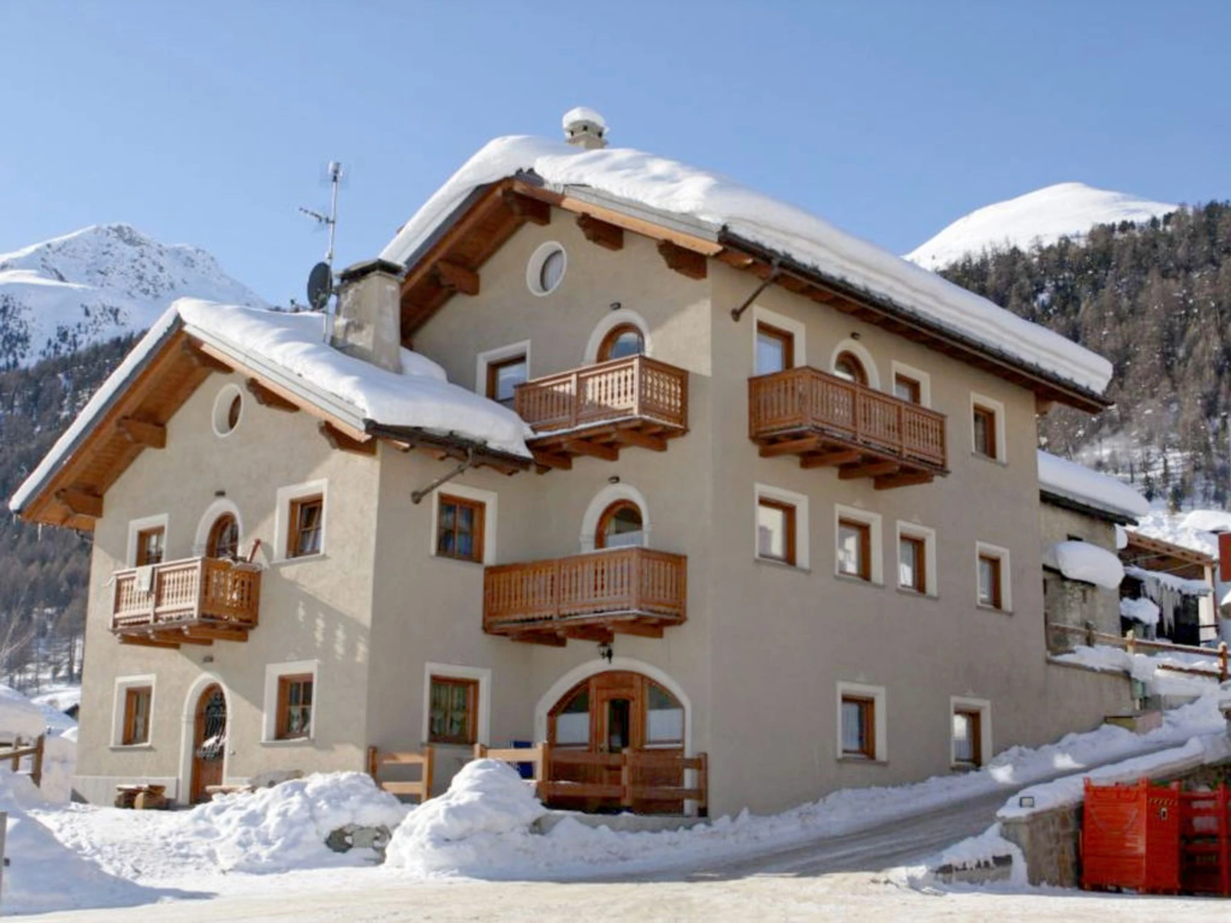Schöne, komfortable Feriensiedlung "Livigno Ski Apartments". Im Ort Livigno, ruhige, sonnige Lage, 1 km vom Skigebiet. Im Hause: Skiraum. Parkplatz (beschränkte Anzahl) beim Haus. Bitte beachten: Gratis Skibus. Das Foto ist nur ein Hausbeispiel.