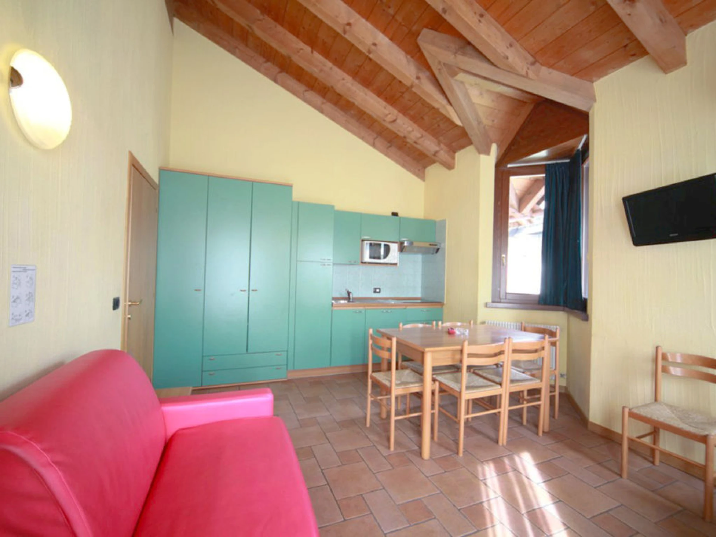 3-Zimmer-Wohnung 55 m2. Komfortabel und schön eingerichtet: Wohn-/Esszimmer mit 1 Doppeldiwanbett und TV. 2 Zimmer, jedes Zimmer mit 1 Doppelbett. Kochnische (Mikrowelle). Dusche/Bidet/WC. Enthaltet: Wäsche (Erstausstattung Bett- und Toilettenwäsche), Heizung, ERV assurance annulation gratuite, Endreinigung