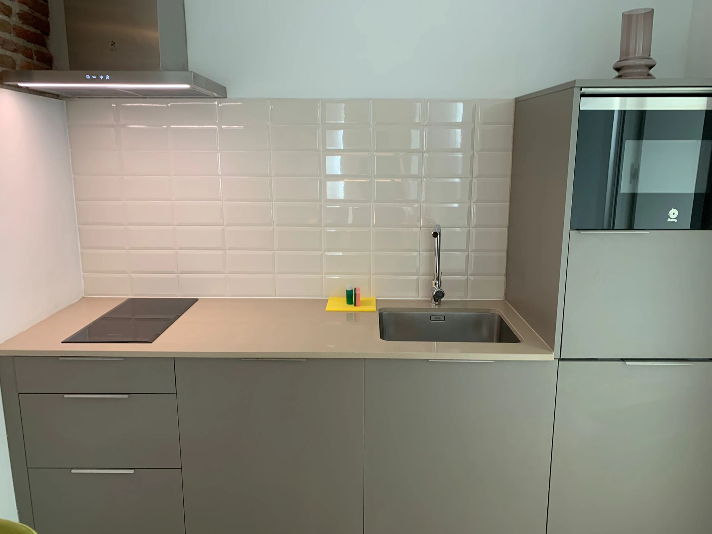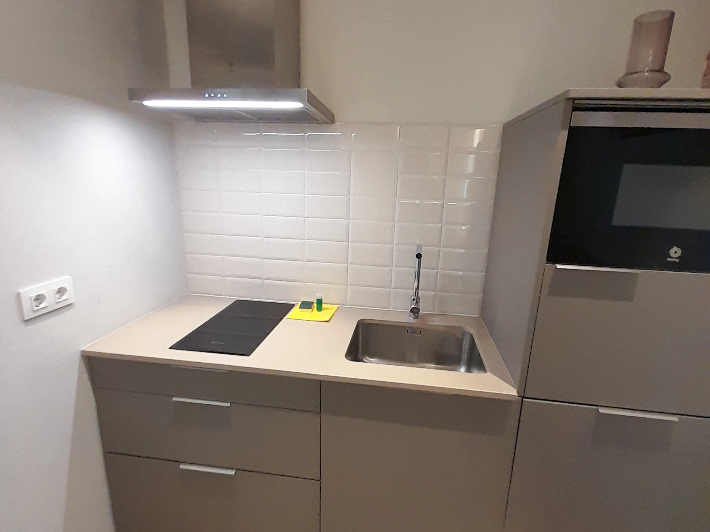 Dieses küche, ist ausgestattet in kühlschrank, mikrowelle, geschirr/besteck, kochutensilien, kaffeemaschine, wasserkocher und saftpresse.