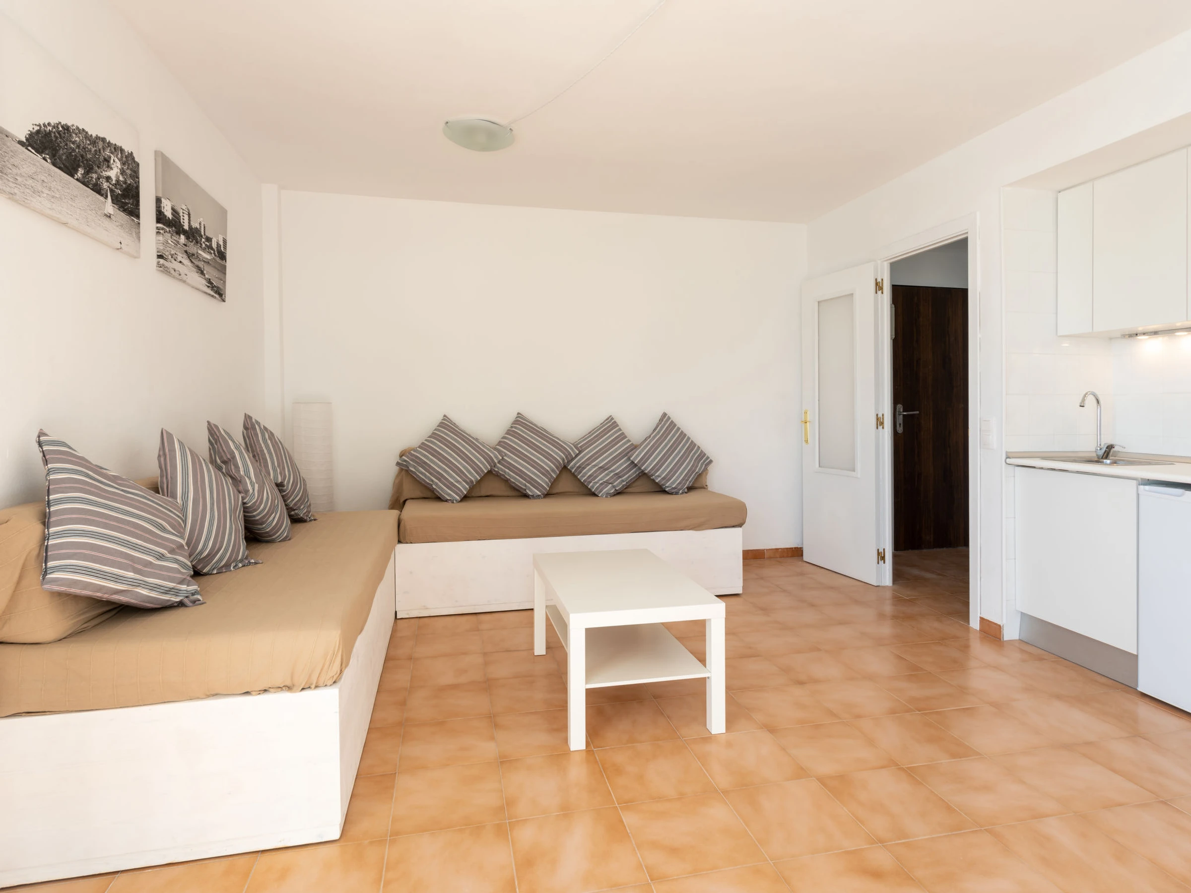 Magaluf 2 km von Palmanova: Gemütliches, einfaches Appartementhaus "Neighbours Beach", auf 2 Stockwerken. 12 Wohnungen im Ferienhaus. Im Ort, 500 m vom Zentrum, zentrale, sonnige Lage, 50 m vom Meer, 50 m vom Strand, Strasse zu überqueren. Im Hause: Internetzugang, Wireless LAN. Einkaufsgeschäft 100 m, Lebensmittelgeschäft, Supermarkt 50 m, Restaurant, Bar 60 m, Bäckerei 150 m, Café 60 m, Fußgängerzone 50 m, Fahrradverleih 200 m, Biergarten 60 m, Zentrum zu Fuss in 5 Minuten erreichbar, Bushaltestelle 170 m, Sandstrand 50 m. Sporthafen 5 km, Jacht-Hafen 5 km, Golfplatz 9 km. Nahe gelegene Sehenswürdigkeiten: St.Ponça,Palmanova,Portals Nous,Bendinat, Karting Magaluf, Pirates Adventure Shows, Western Waterpark, Katmandu Park, Nikki Beach Mallorca 94 m, Bars and Restaurants. Bitte beachten: kein Fahrstuhl vorhanden. Objekt geeignet für 4 Erwachsene Jugendgruppen nur auf Anfrage. Flugplatz 29 km vom Haus. Die Wohnung befindet sich in einer für den Verkehr begrenzt zugänglichen Zone (ZTL). Weitere Unterkünfte sind buchbar. In dieser Anlage zusätzlich mietbar: 11 Häuser.