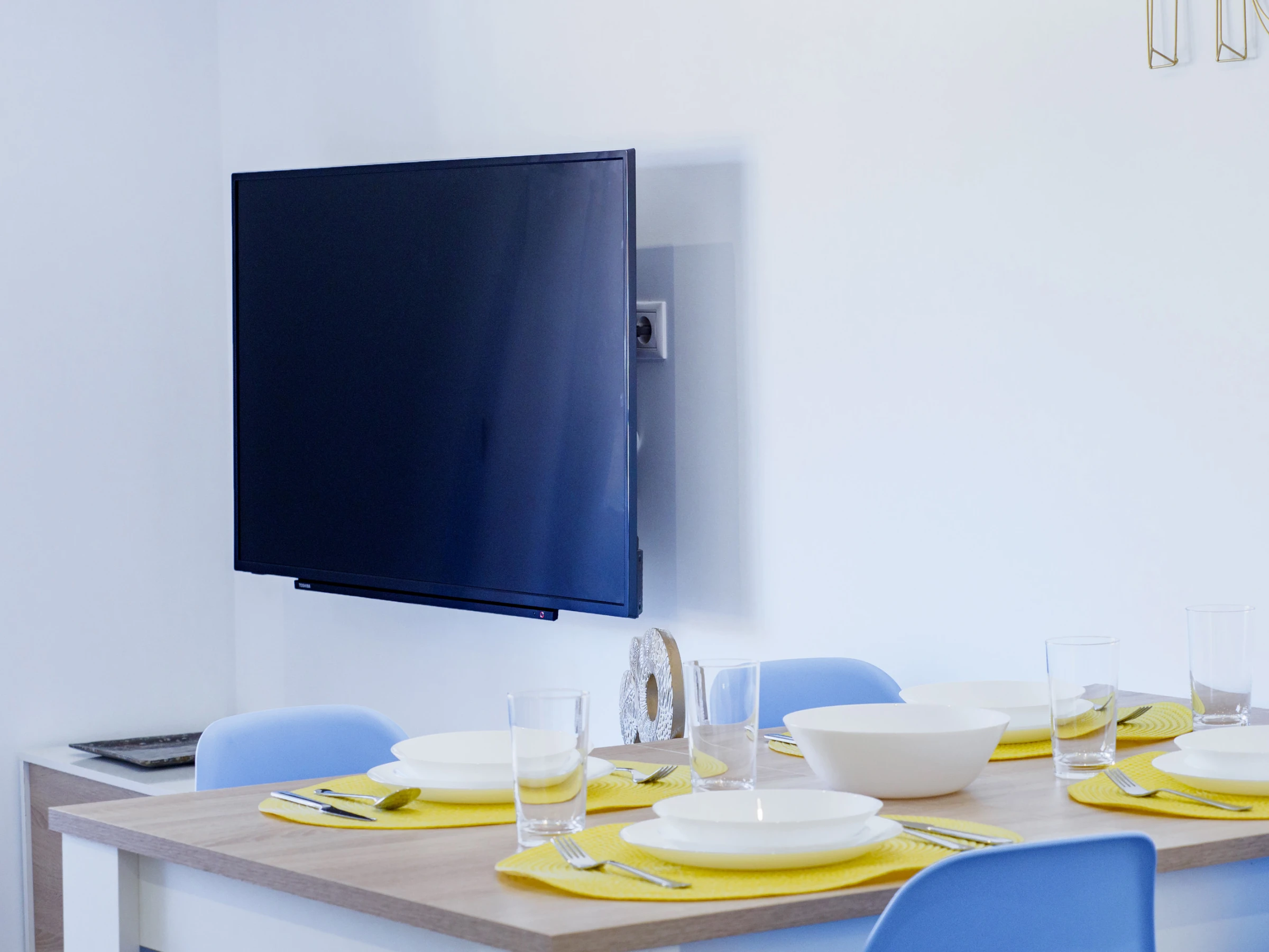 Zu Ihrer Bequemlichkeit verfügt die Wohnung über eine zentrale Klimaanlage, mit der Sie die Temperatur je nach Jahreszeit regulieren können, zusätzlich zur Heizung mit Wärmepumpe und Ventilatoren für ein stets angenehmes Ambiente ❄️🔥. Der Internetanschluss per Glasfaser und der mehrsprachige Smart-TV garantieren Unterhaltung und bieten auch die Möglichkeit, bei Bedarf remote zu arbeiten 💻📺.