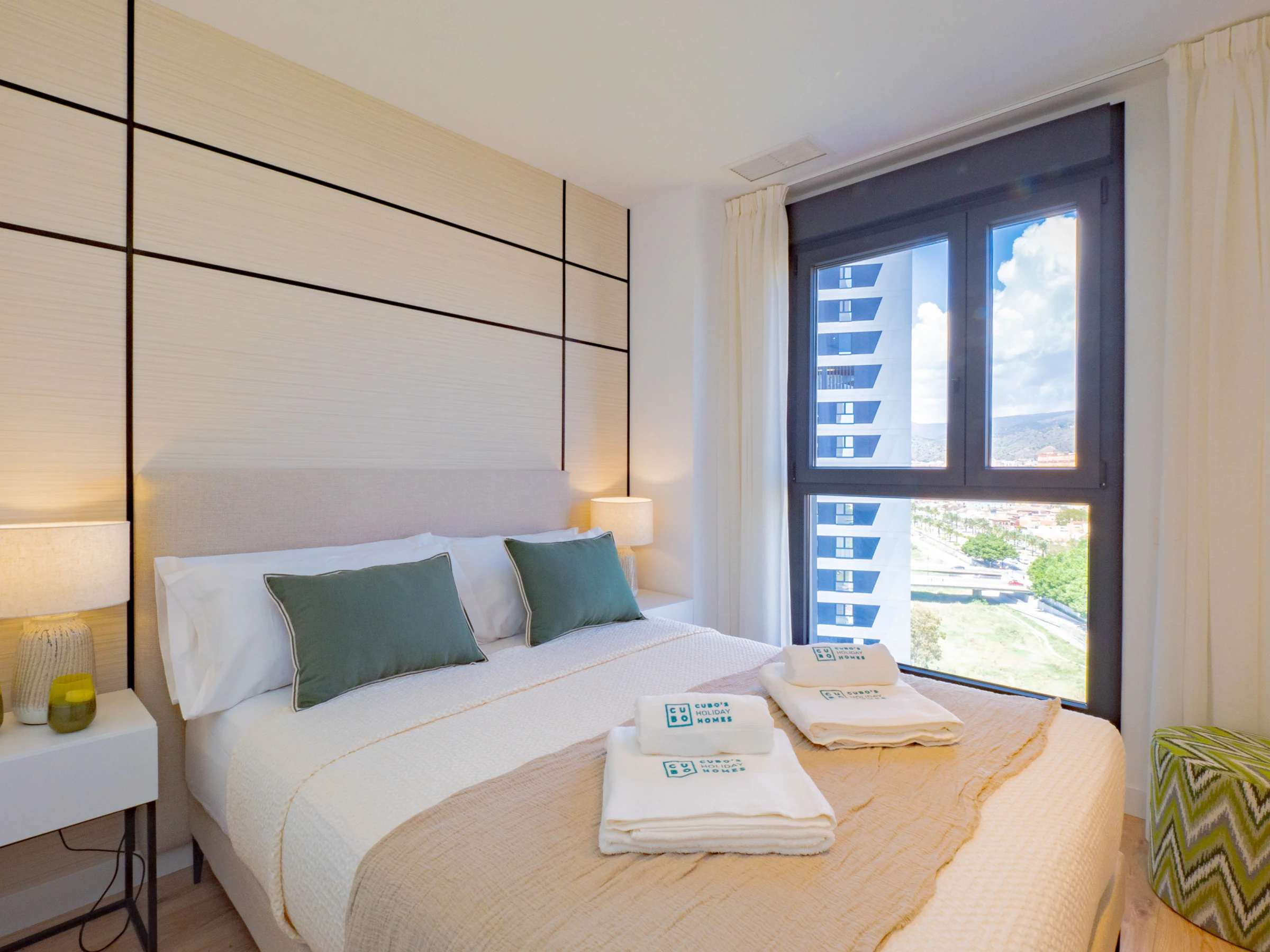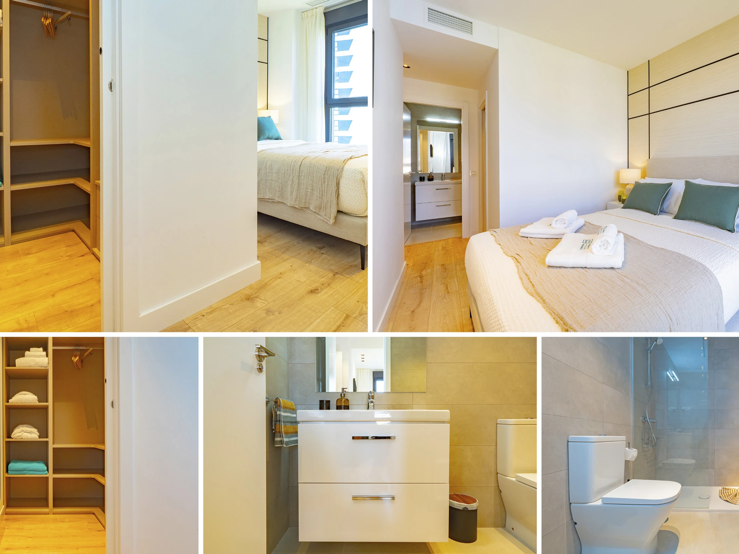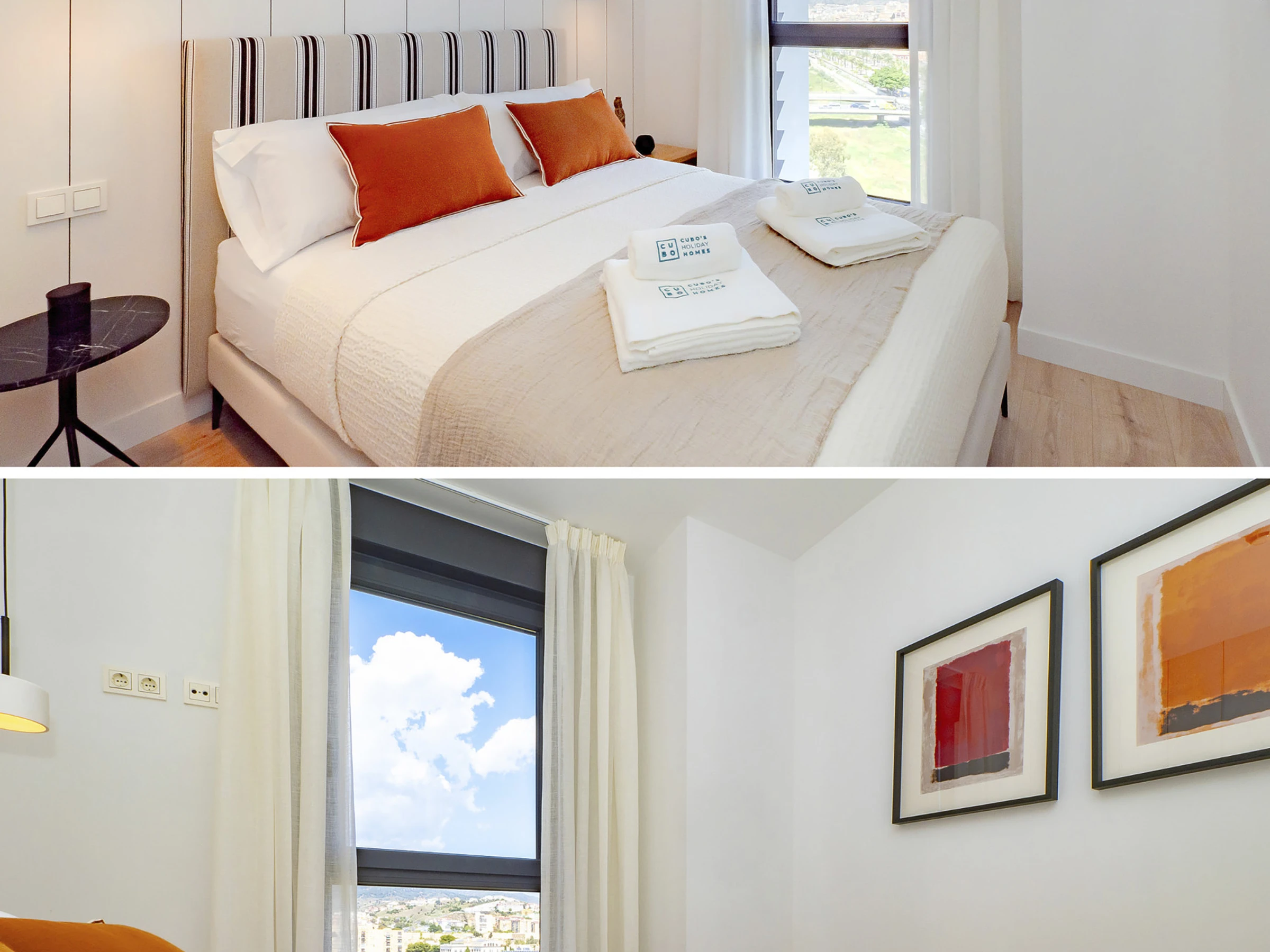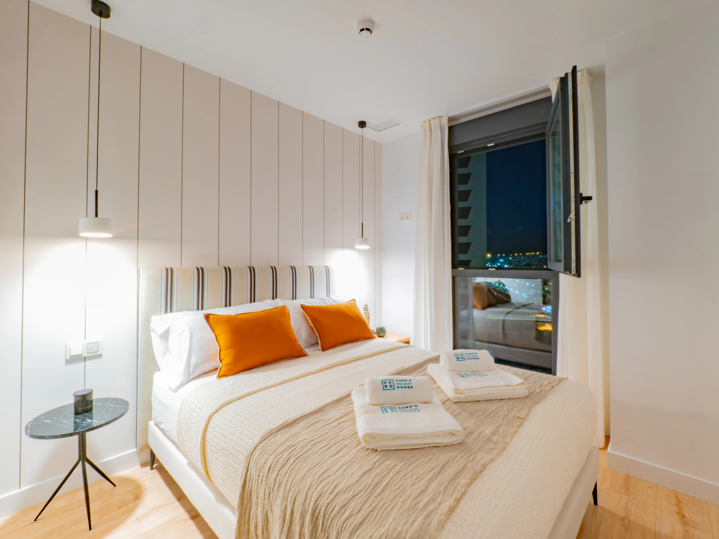Diese Luxus-Ferienwohnung für 6 Personen befindet sich im emblematischen Viertel Martiricos, nur 15 Gehminuten von der lebhaften Calle Larios entfernt. Er liegt im zwölften Stock der Martiricos-Türme und bietet ein einzigartiges Erlebnis mit Panoramablick auf Málaga und einem eleganten, sorgfältig gestalteten Innenraum. Mit 98 m² verfügt die Unterkunft über drei Schlafzimmer: zwei mit Doppelbetten (eines mit eigenem Badezimmer) und ein drittes mit zwei Einzelbetten, die einen komfortablen und privaten Aufenthalt für alle Gäste gewährleisten.