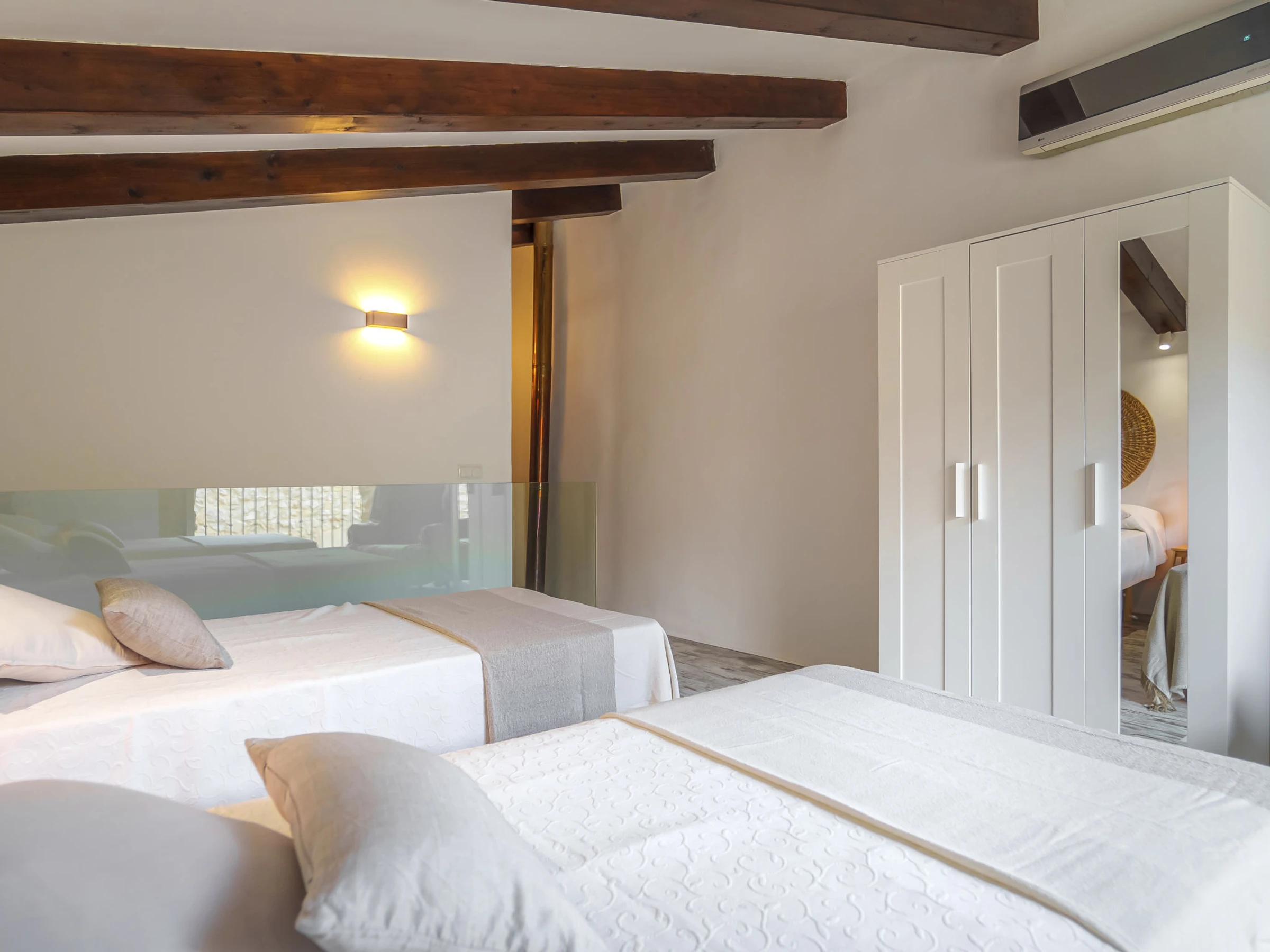 "Biniarroi Charm & Quality", 5-Zimmer-Haus 110 m2 auf 2 Stockwerken. Objekt geeignet für 5 Erwachsene. Vollständig renoviert, sehr komfortabel und schön eingerichtet: Esszimmer mit Panoramafenster mit Esstisch. Grosses Wohnzimmer mit Panoramafenster mit offenem Kamin (nur Deko), Digital-TV, Flachbildschirm, Klimaanlage und Warmluftheizung. Küche (Backofen, Geschirrspüler, 3 Glaskeramikplatten, Toaster, Wasserkocher, Mikrowelle, Tiefkühler, elektrische Kaffeemaschine). Sep. WC. Obergeschoss: 1 grosses Doppelzimmer mit 1 franz. Bett (150 cm, Länge 200 cm), Dusche/WC, Klimaanlage und Warmluftheizung. Ausgang zur Terrasse. 1 Zimmer mit 1 Bett (90 cm, Länge 200 cm), Ventilator. 1 offenes Doppelzimmer mit Panoramafenster mit 2 Betten (100 cm, Länge 200 cm), Klimaanlage und Warmluftheizung. Dusche/WC. Kleine Terrasse. Zur Verfügung: Waschmaschine, Wäschetrockner, Bügeleisen, Kinderhochstuhl, Babybett bis 2 Jahre, Haartrockner. Internet (WLAN, gratis). Bitte beachten: Nichtraucher-Haus. Feuerlöscher. [hidden]