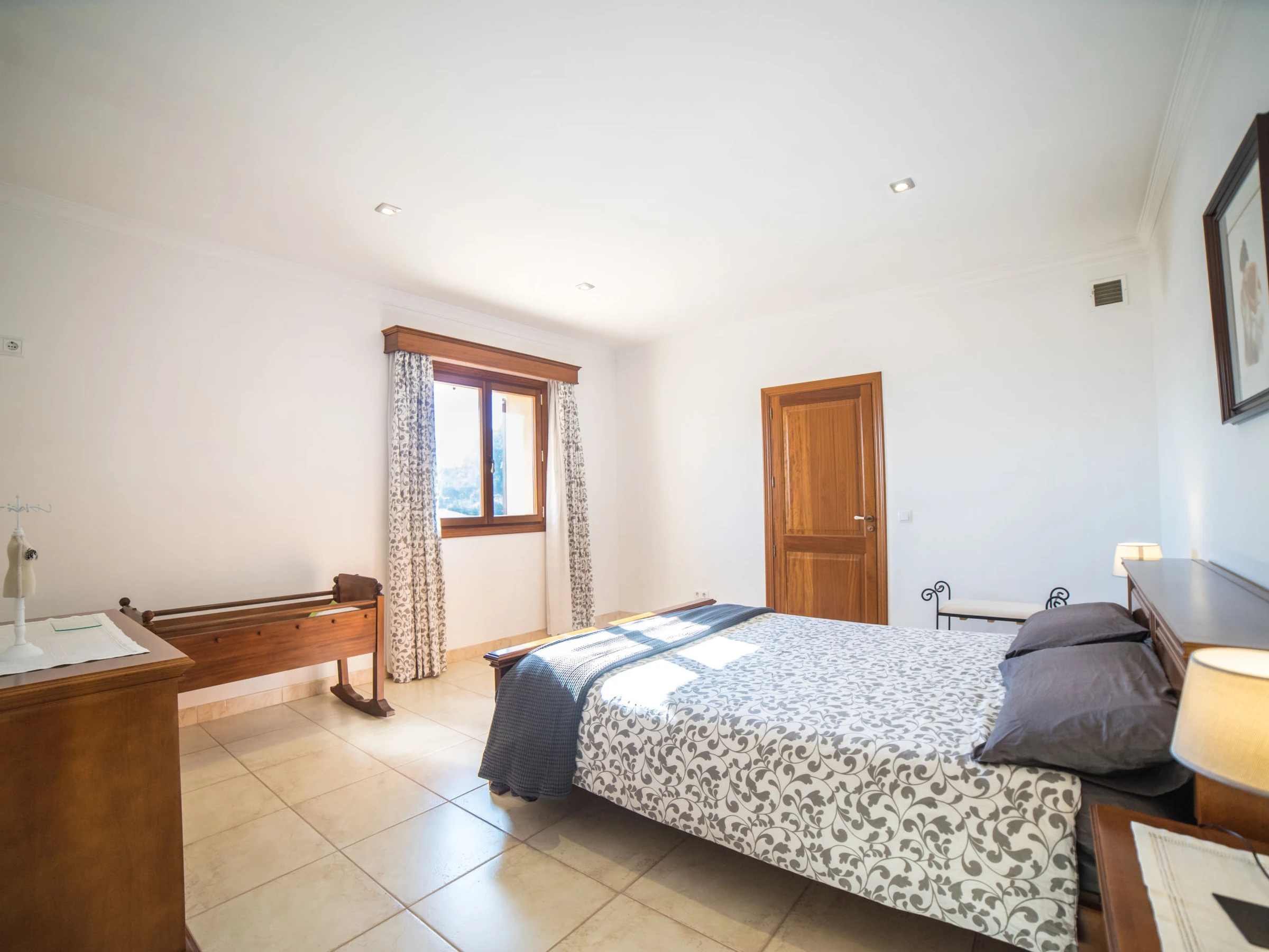 "Son Trobat", 7-Zimmer-Haus 300 m2 auf 2 Stockwerken. Objekt geeignet für 8 Erwachsene. Geräumig und hell, vollständig renoviert, sehr komfortabel und geschmackvoll eingerichtet: grosses Wohnzimmer mit Panoramafenster mit offenem Kamin, Sat-TV, Digital-TV, Flachbildschirm und Holzofen. Ausgang zur Terrasse. 1 grosses Doppelzimmer mit Panoramafenster mit 1 franz. Bett (180 cm, Länge 200 cm), Holzofen. Salon mit Panoramafenster. Wohnküche 50 m2 (Backofen, Geschirrspüler, 3 Glaskeramikplatten, Toaster, Wasserkocher, Mikrowelle, Tiefkühler, elektrische Kaffeemaschine) mit Bar, Esstisch, Klimaanlage und Warmluftheizung. Ausgang zur Terrasse. Bad/Dusche/Bidet/WC. Obergeschoss: 1 grosses Doppelzimmer mit Panoramafenster begehbarem Kleiderschrank mit 1 franz. Bett (150 cm, Länge 200 cm), Holzofen, Klimaanlage und Warmluftheizung. 1 Doppelzimmer mit Panoramafenster mit 1 franz. Bett (140 cm, Länge 200 cm), TV und Holzofen mit 2 Betten (90 cm, Länge 200 cm). Bad/Dusche/Bidet/WC, Doppelwaschbecken, Whirlbadewanne. Grosse Terrasse, Laube. Terrassenmöbel, Gartengrill, Loggia, Sitzplatz, Abstellkammer. Sicht auf die Ortschaft. Zur Verfügung: Waschmaschine, Wäschetrockner, Bügeleisen, Babybett bis 2 Jahre, Haartrockner. Internet (WLAN, gratis). Geeignet für Familien. [hidden] // Reg. Nr.: ESFCTU0000070220000675270000000000000000000ETV/133388