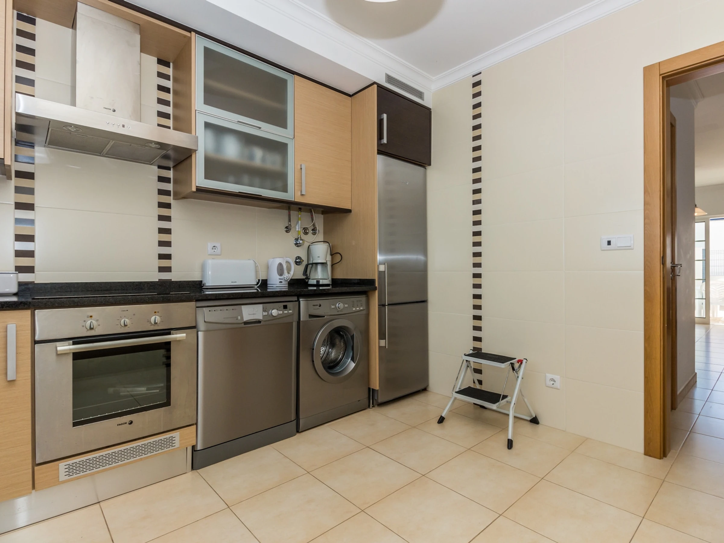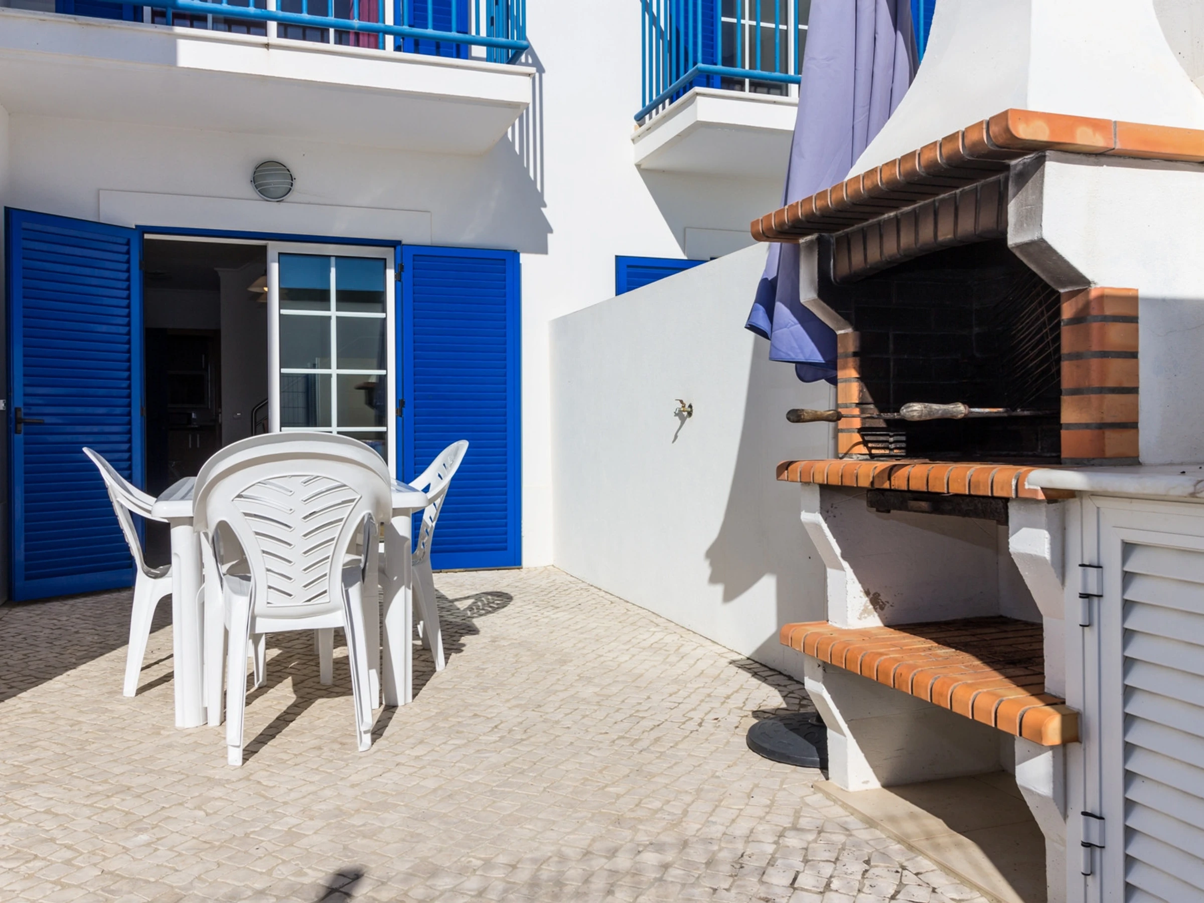 Im Erdgeschoss finden Sie eine geräumige Eingangshalle, eine vollständig ausgestattete Küche mit Kühlschrank, Herd, Backofen, Mikrowelle, Toaster, Kaffeemaschine für Delta Q-Kapseln, elektrischer Kanne, Geschirrspüler und Waschmaschine sowie ein großes Wohn- und Esszimmer und ein Badezimmer mit Dusche. Es gibt zwei Höfe: einen nach Norden mit privatem Parkplatz und einen nach Süden mit Grill, Spülbecken, Sonnenschirm und viel Platz zum Zusammensein mit Familie und Freunden.
