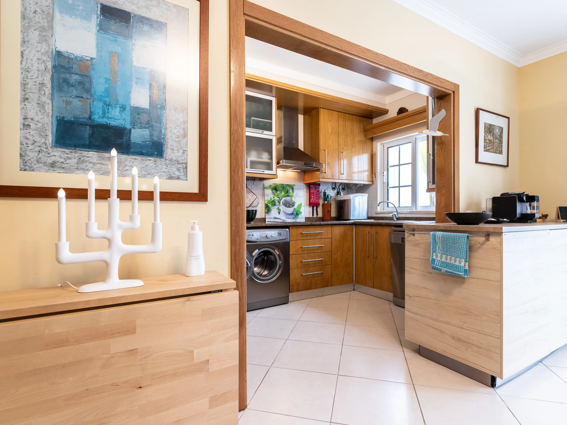 Die vollständig ausgestattete Küche ist ein echter Höhepunkt mit modernen Haushaltsgeräten, einschließlich Induktionsherd, Kühlschrank, Waschmaschine, Geschirrspülmaschine, Backofen, Mikrowelle, Kaffeemaschine, Toaster und Wasserkocher. Alle notwendigen Küchenutensilien stehen Ihnen zur Verfügung, um köstliche Mahlzeiten zuzubereiten.