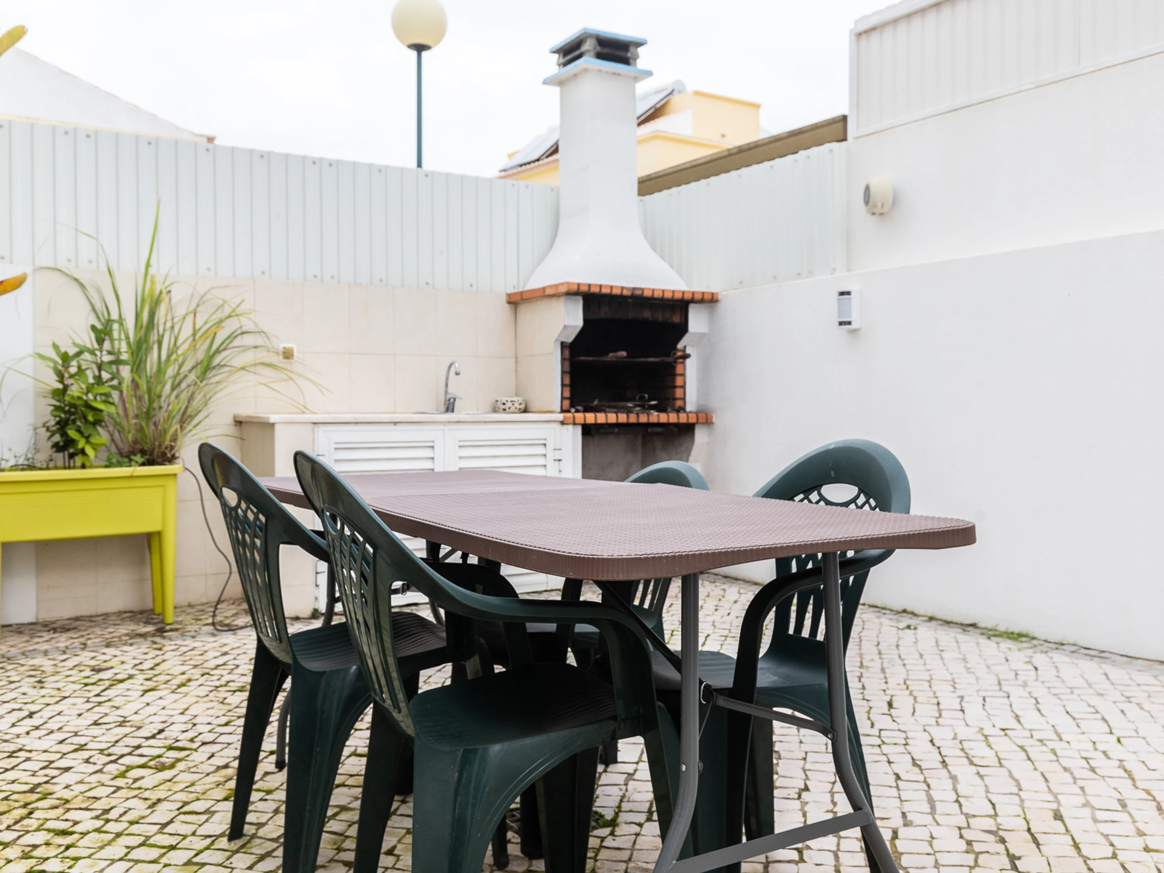 Genießen Sie den Außenbereich mit Gartenmöbeln und Grill, perfekt für gesellige Momente und Mahlzeiten im Freien.