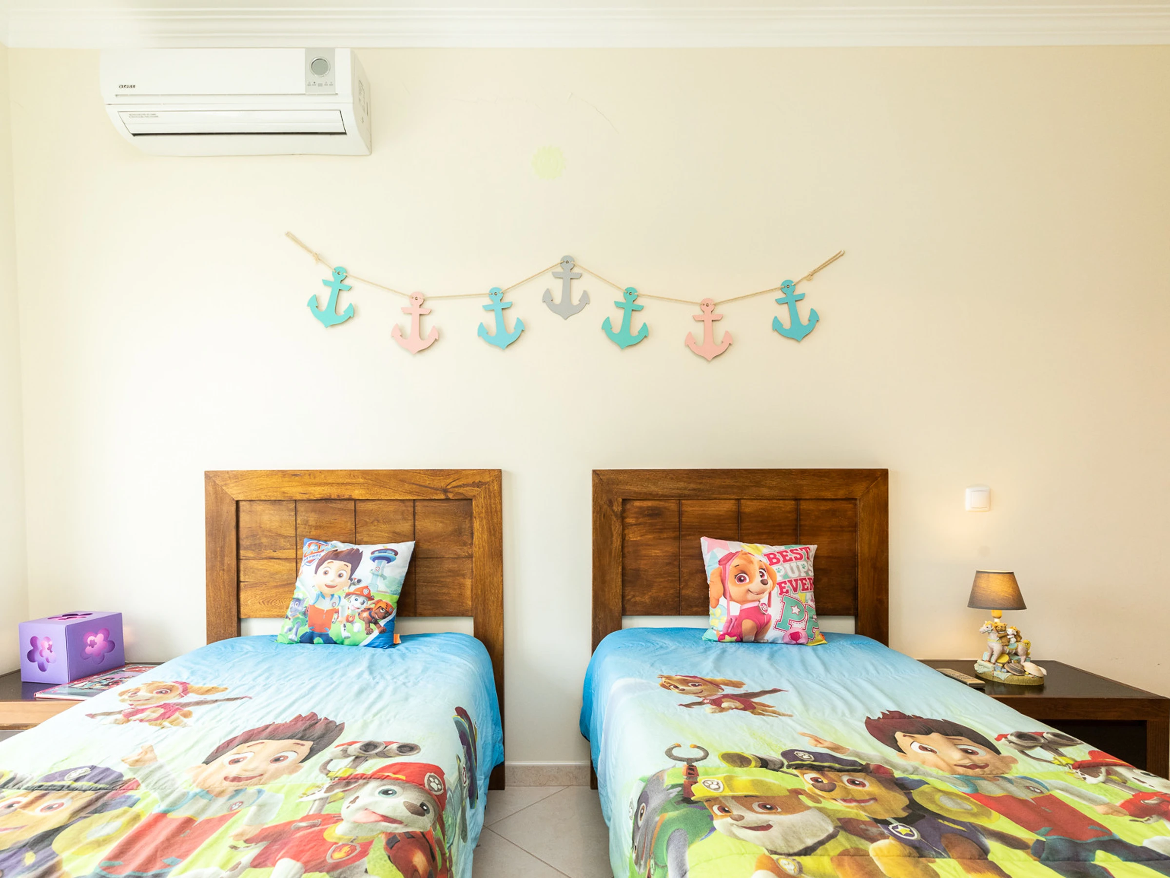 Diese wundervolle Unterkunft bietet komfortable Unterbringung für bis zu 7 Personen, mit 3 elegant eingerichteten Schlafzimmern. Zwei Schlafzimmer verfügen über Doppelbetten und zwei über Einzelbetten, was Flexibilität und Komfort für alle Gäste gewährleistet.