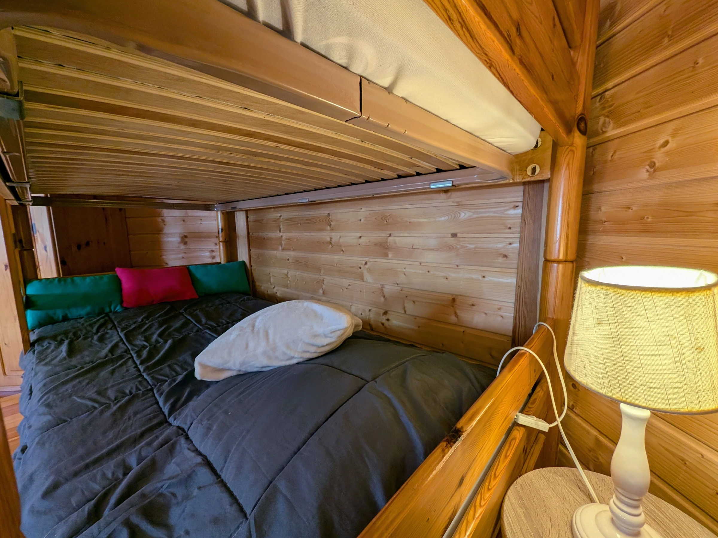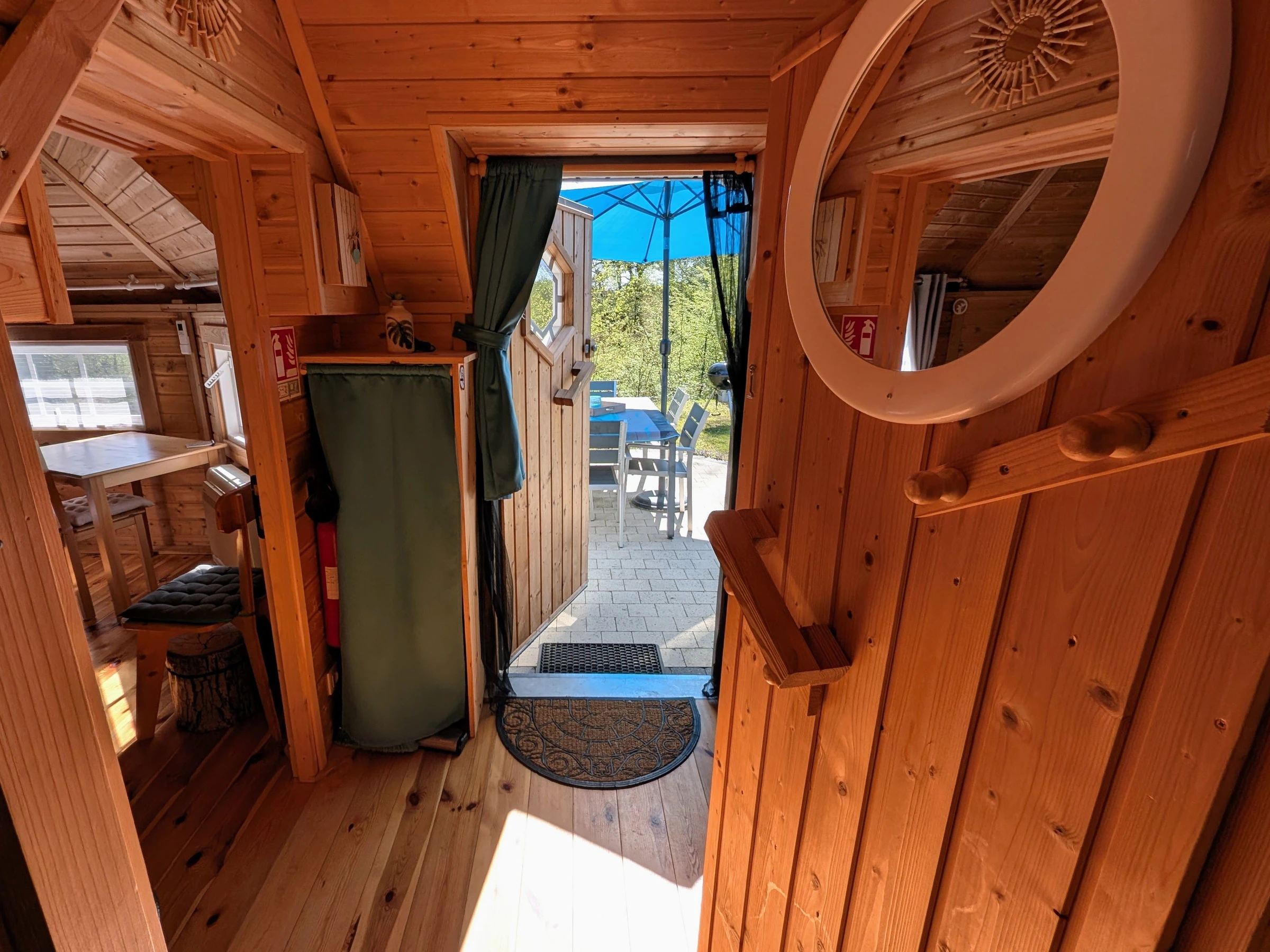 Diese ungewöhnliche Holzunterkunft verfügt über: