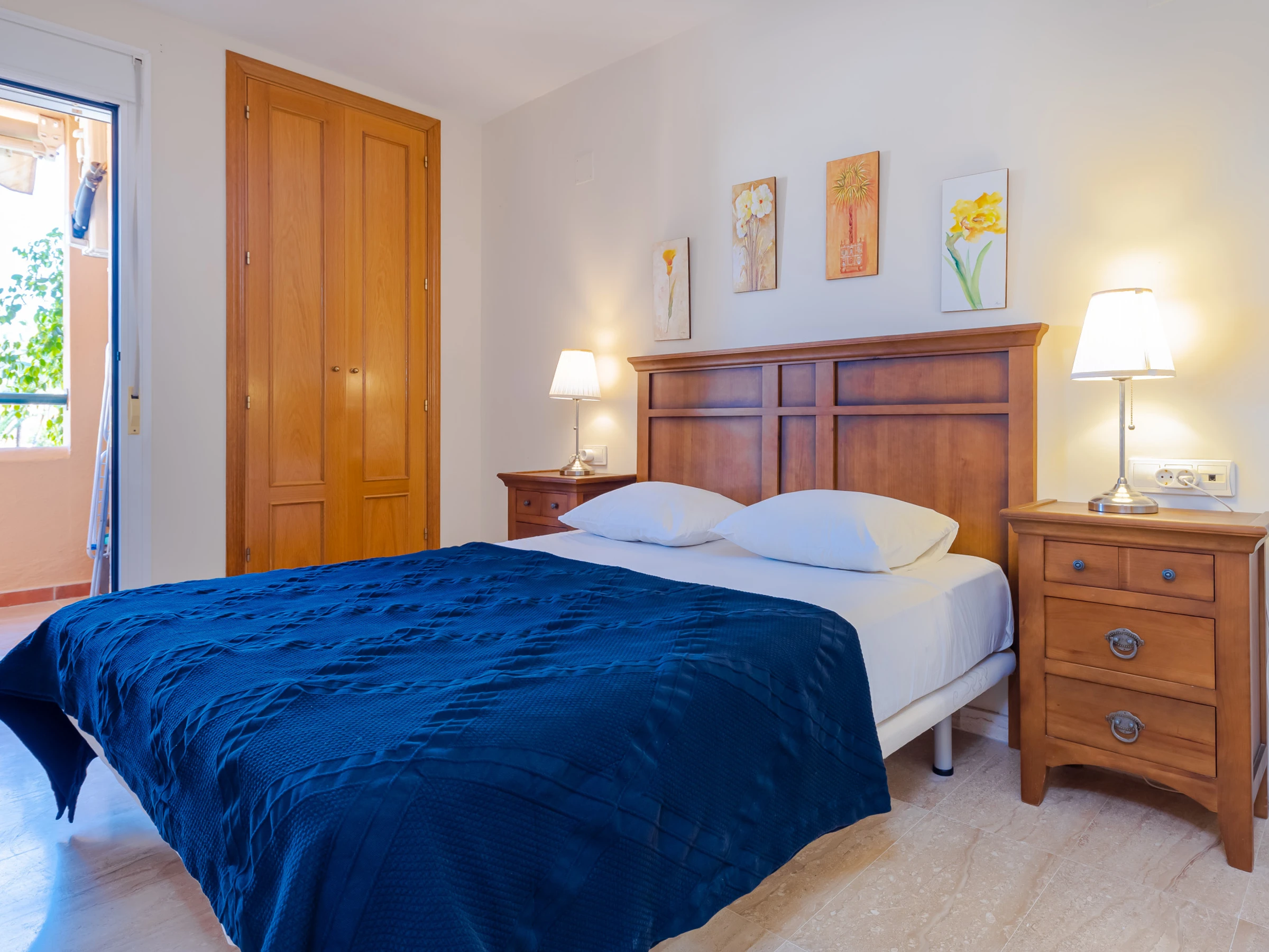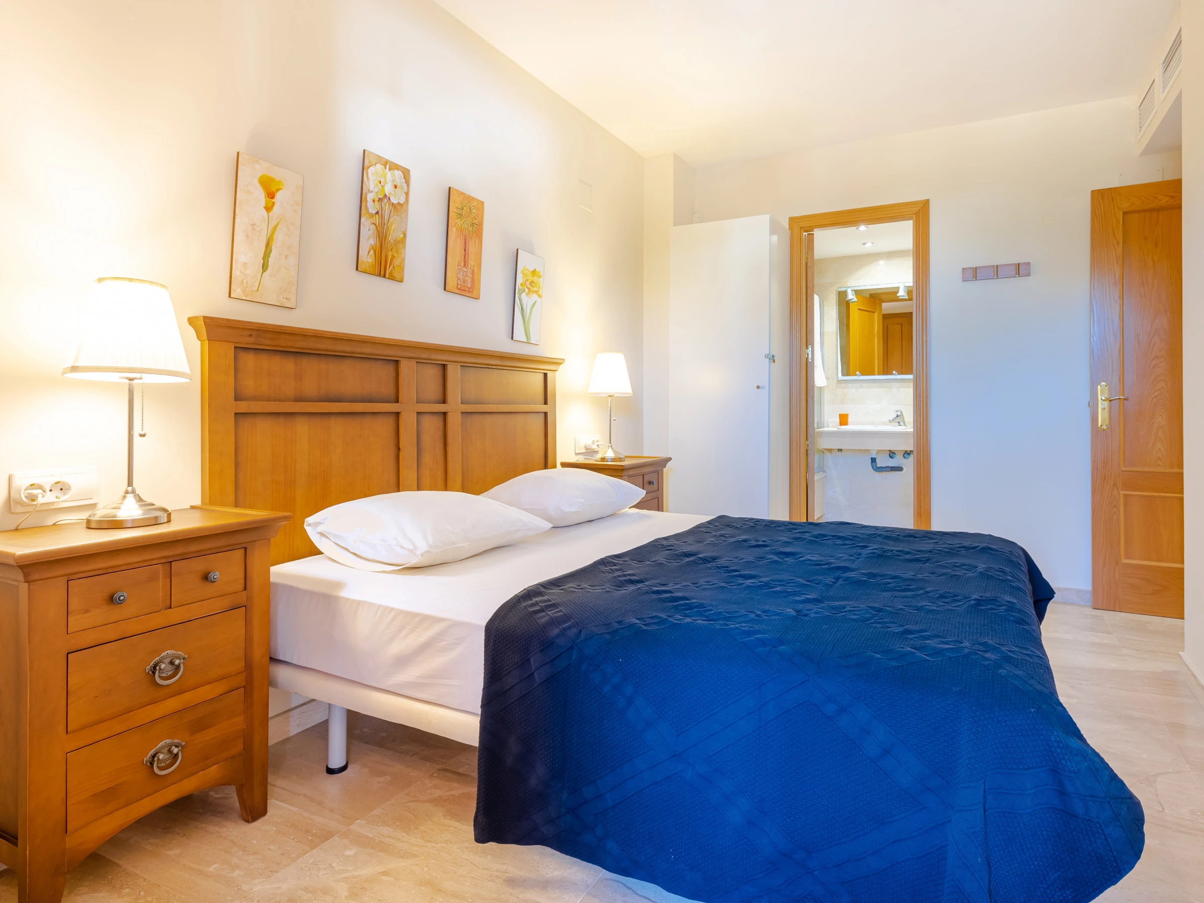 Das Hauptschlafzimmer hat auch direkten Zugang zur Terrassenfläche und verfügt über 1 Doppelbett mit eigenem Badezimmer mit Toilette, Bidet, Waschbecken und einer Kombination aus Badewanne/Dusche. Das andere Schlafzimmer hat 2 Einzelbetten. Die Schlafzimmer sind jeweils mit einem eingebauten Schrank ausgestattet. Das zweite Badezimmer verfügt über Dusche, Waschbecken und Toilette.