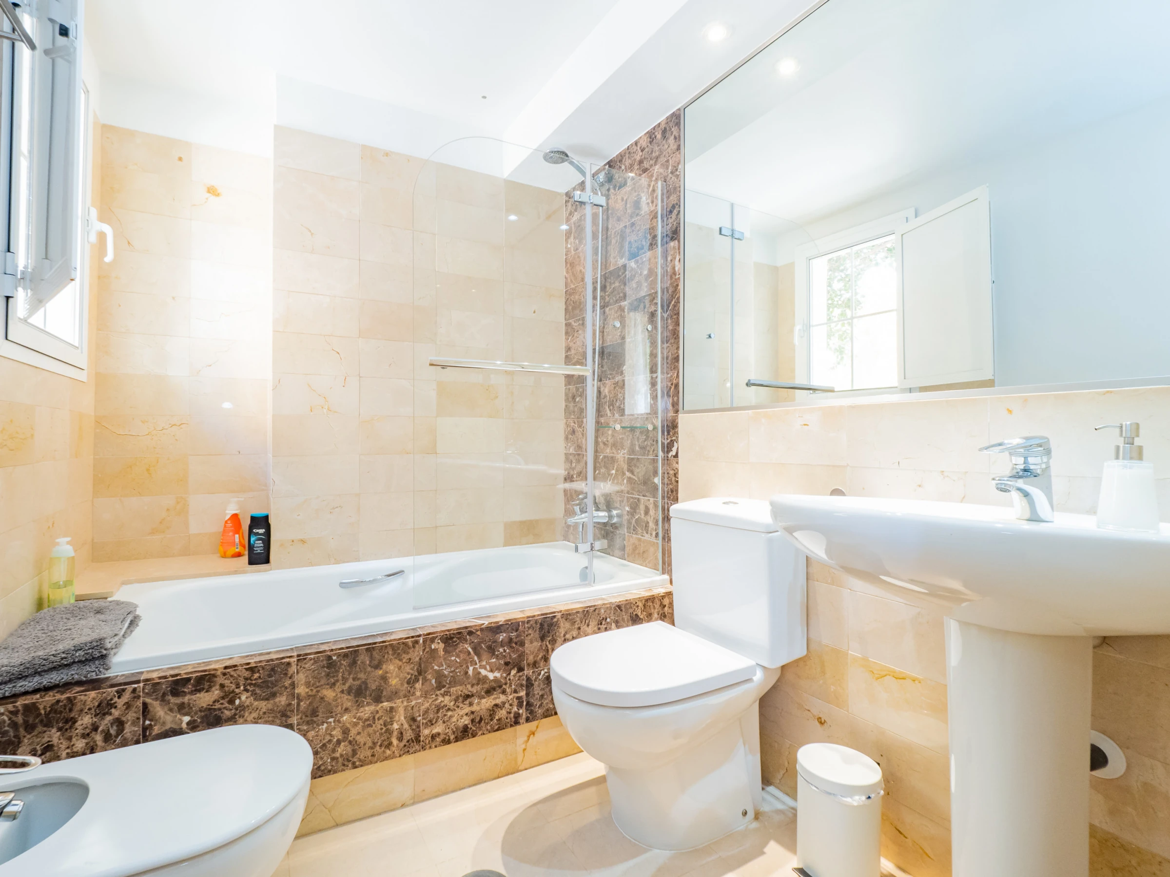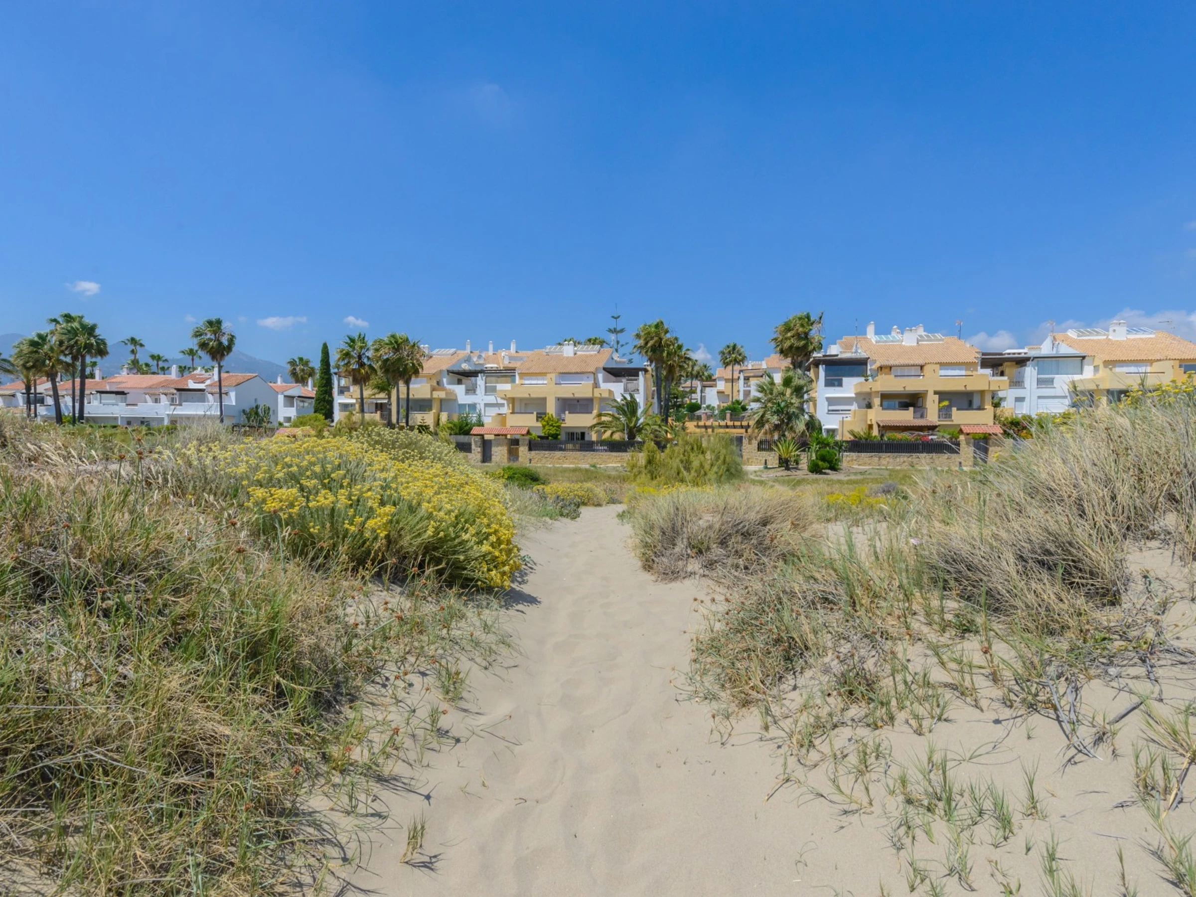 Mit 160 m² liegt es in der ersten Reihe am Strand mit Blick auf Garten und Pool, nur 100 m von der Marbella-Strand entfernt. Es befindet sich in der Nähe von lokalen Restaurants, bekannten Golfplätzen wie Golf Rio Real und Santa Clara Marbella Golf, Bushaltestellen, Supermärkten und Naturparks wie den Dünen von Artola. Es ist auch in der Nähe von Familienattraktionen, Wasserparks und der Stadt Marbella und bietet Unterhaltung und Komfort für die ganze Familie 🎯⛳🏞️.