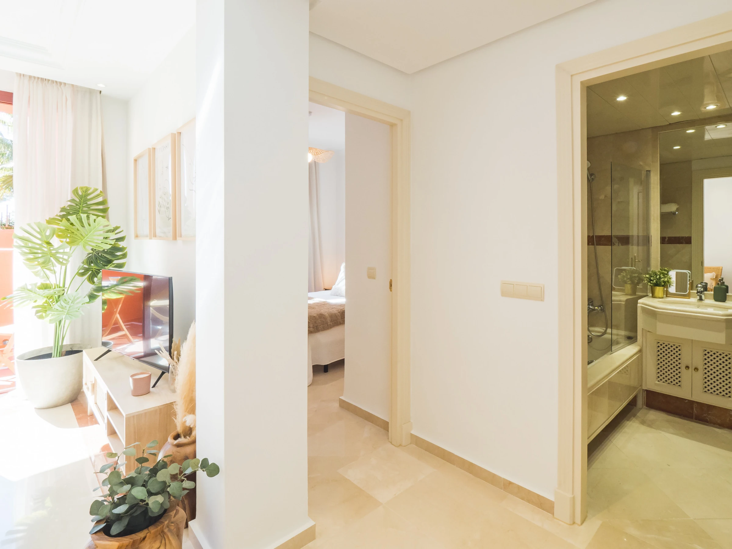 Genießen Sie eine gemütliche Wohnung in Elviria, Marbella, mit direktem Zugang zum Strand, Pool und allen Annehmlichkeiten für unvergessliche Ferien am Meer. 🌞🏖️