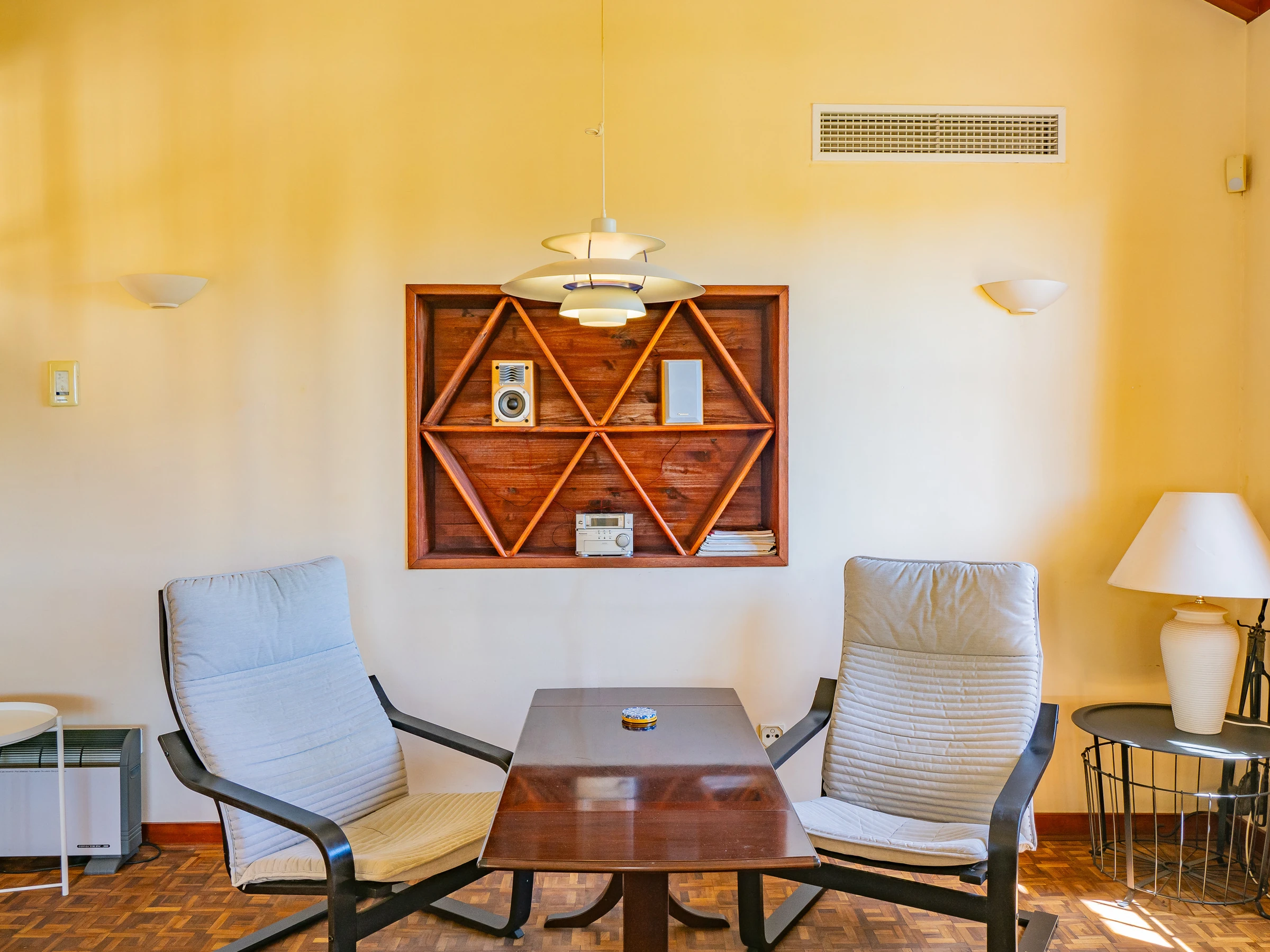 Bei der Ankunft finden Sie eine private Parkzone und einen kleinen Empfangsbereich, der Zugang zu einem charmanten Innenhof bietet, dem zentralen Kern, der die verschiedenen Etagen der Villa verbindet. In diesem Hauptgeschoss sticht ein geräumiger, heller Wohn-Essbereich mit einem Satteldach hervor, der mit Holzbalken dekoriert ist, ideal zum Entspannen oder für Familienmahlzeiten. 🍽️📚