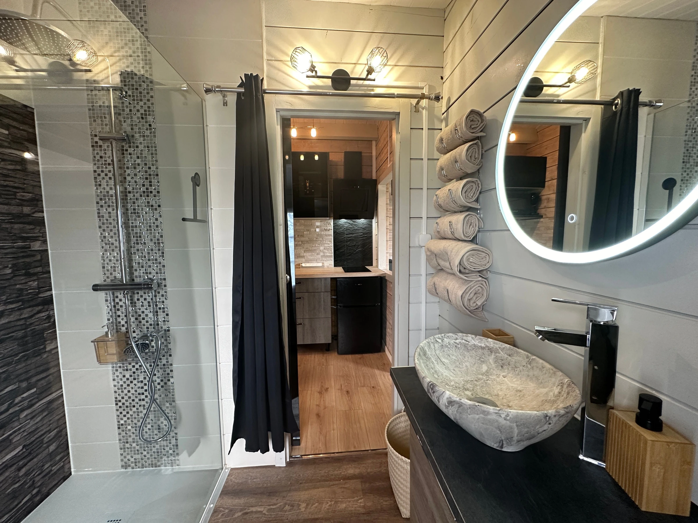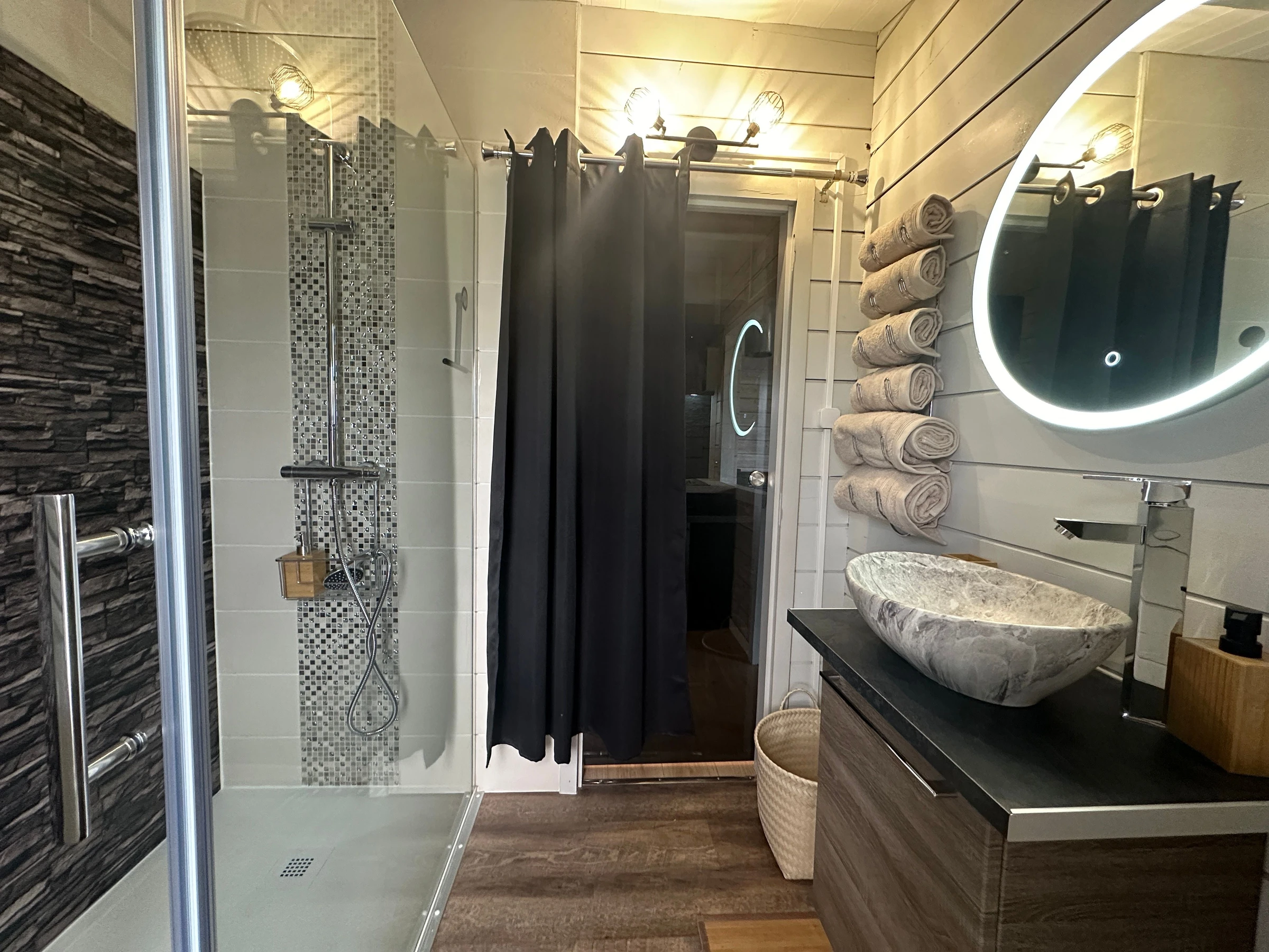 Dieses gemütliche kleine Chalet in außergewöhnlicher Lage bietet komfortable Unterkünfte und ist ideal für ein Paar mit zwei Kindern. Genießen Sie den wunderschönen Seeblick. Der angenehme Wohnbereich bietet direkten Zugang zu einer geräumigen Terrasse mit Gartenmöbeln und Gasgrill. Flachbildfernseher, Klimaanlage (Heizung/Kühlung) und Pelletofen (7 €/Sack) stehen Ihnen ebenfalls zur Verfügung.