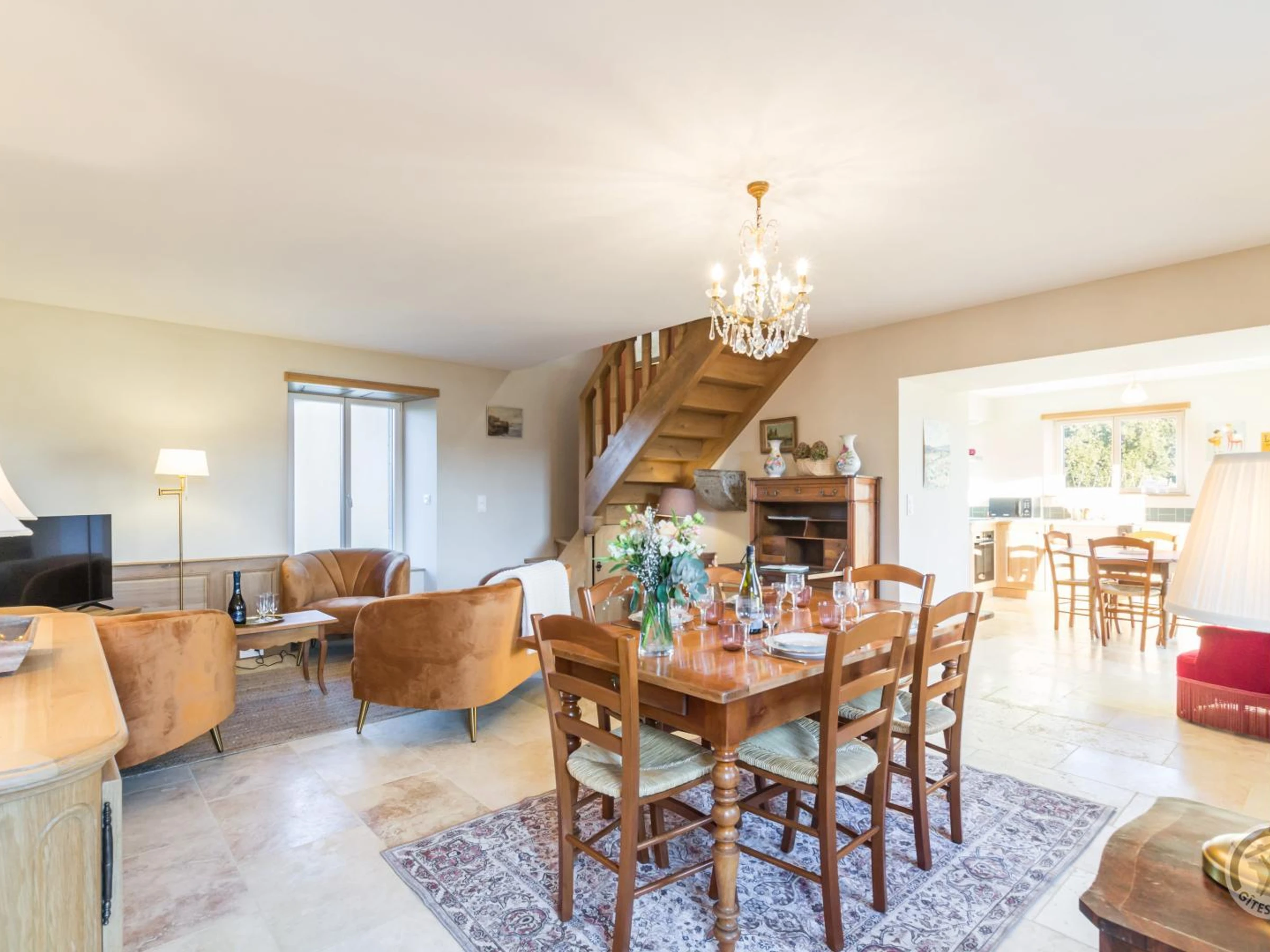 Freistehendes Haus in der Nähe des Wohnsitzes der Eigentümer. Wohnzimmer (Internet, TV, Schreibtisch). Offene Küche (Backofen, Induktionskochfeld, Mikrowelle, Kühlschrank, Gefrierschrank, Espressomaschine, Geschirrspüler). Separates WC. Waschküche (Waschmaschine). Im Obergeschoss befinden sich eine Galerie mit Bibliothek, Schlafzimmer 1 (zwei 80x200 cm große Betten, die zusammengestellt werden können) mit eigenem Duschbad, Schlafzimmer 2 (ein 160x200 cm großes Bett) mit eigenem Duschbad und ein separates WC. Babyausstattung ist auf Anfrage erhältlich. Bettwäsche und Handtücher werden gestellt. Die Betten sind bei Ankunft bezogen. Reinigungsservice gegen Aufpreis. Elektrische Fußbodenheizung im Erdgeschoss. Alle Nebenkosten inklusive. Privater, nicht eingezäunter Garten. Terrasse. Gartenmöbel. Garage mit Tischtennisplatte. Tischfußball (Bonzini). Privater Parkplatz für zwei Fahrzeuge. Eingebettet in einen malerischen Hang mit Blick auf das Oir-Tal ist das Anwesen von Jeanne und Adrien eine Oase der Ruhe auf dem Land. Sie laden Sie ein, diese ruhige Umgebung zu genießen und bieten ein charmantes, komplett von den Gastgebern renoviertes Haus an. Der gelernte Schreiner Adrien hat mit Eichenholz ein einzigartiges und hochwertiges Interieur geschaffen. In Kombination mit Travertinböden verleihen die hellen Hölzer den Räumen Wärme und Eleganz. Die Raumaufteilung ist ideal für Paare, die gemeinsam reisen: Es gibt zwei schöne Schlafzimmer, jeweils mit eigenem Bad. Familien werden den großen Garten und den nur 600 Meter entfernten Grünweg zu schätzen wissen.