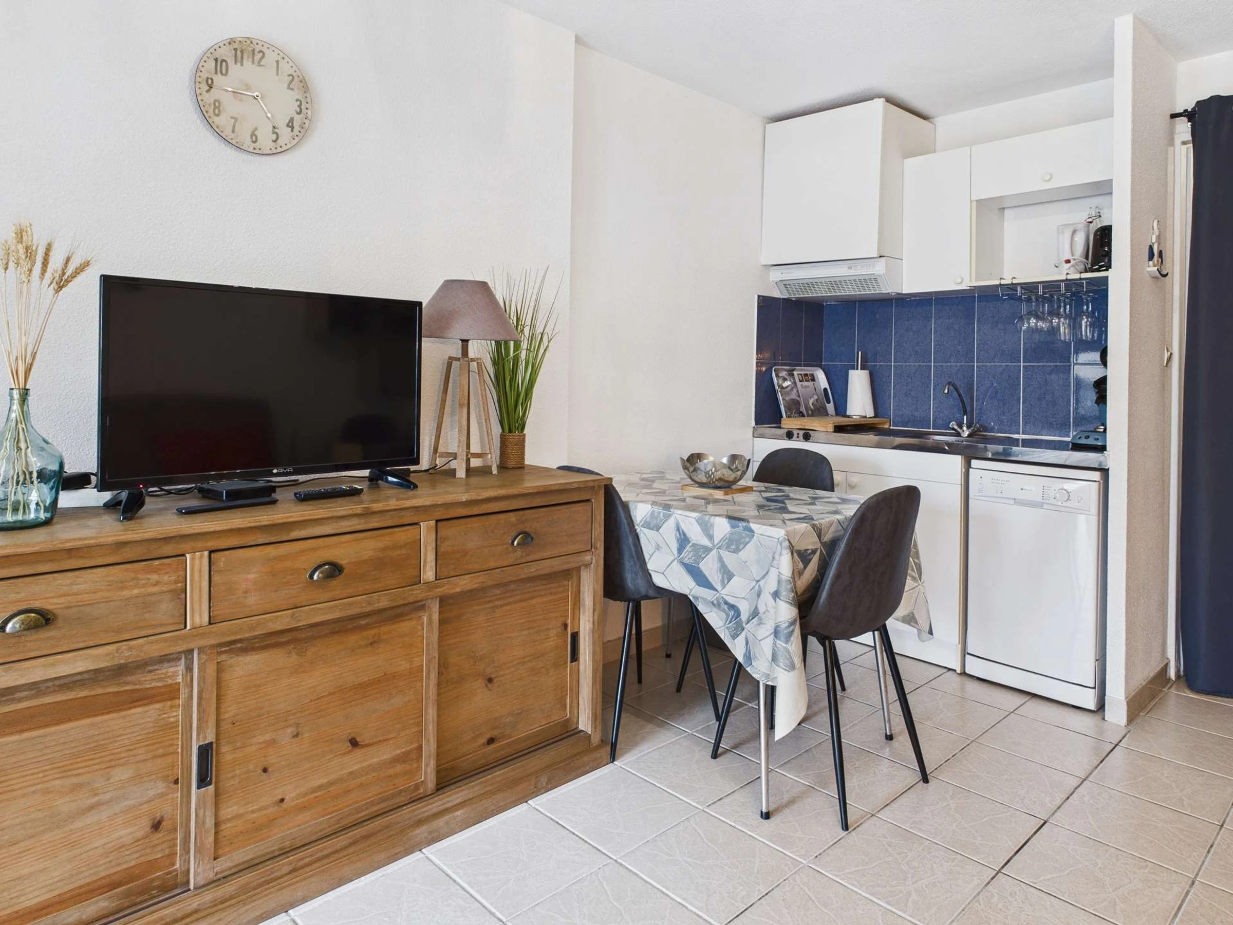 Ausstattung: Waschmaschine, großer Kühl-/Gefrierschrank, Geschirrspüler.