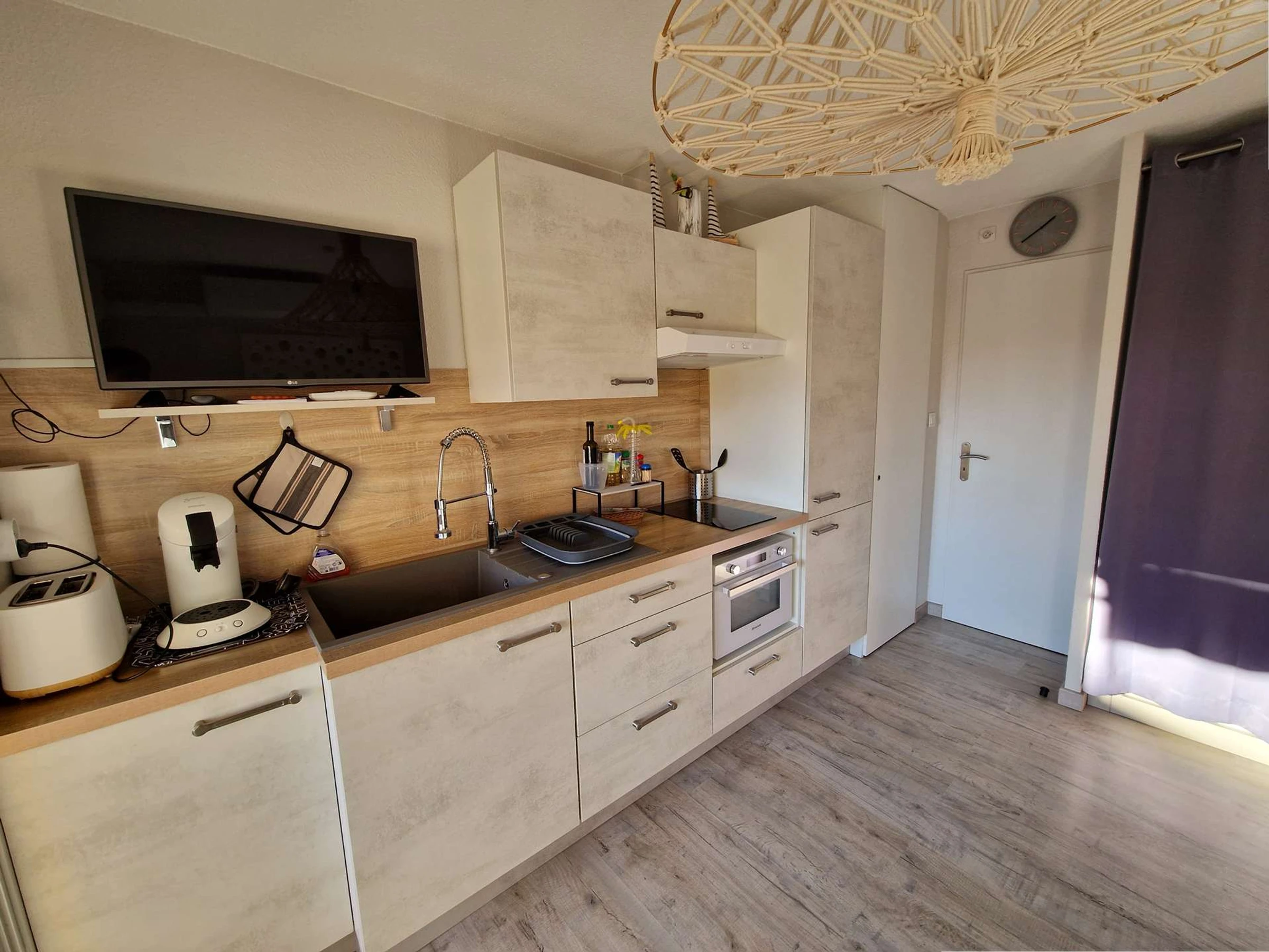 Dieses charmante Apartment mit einem Schlafzimmer und einer Schlafnische befindet sich im ersten Stock und ist ideal für einen Urlaub in Marseillan Plage.