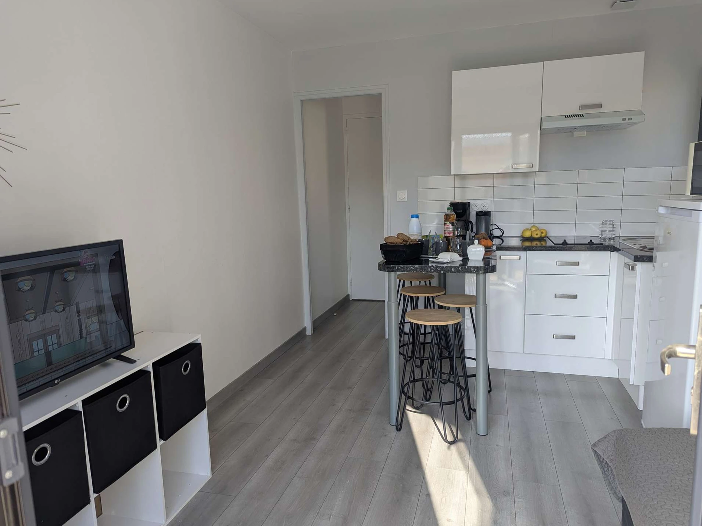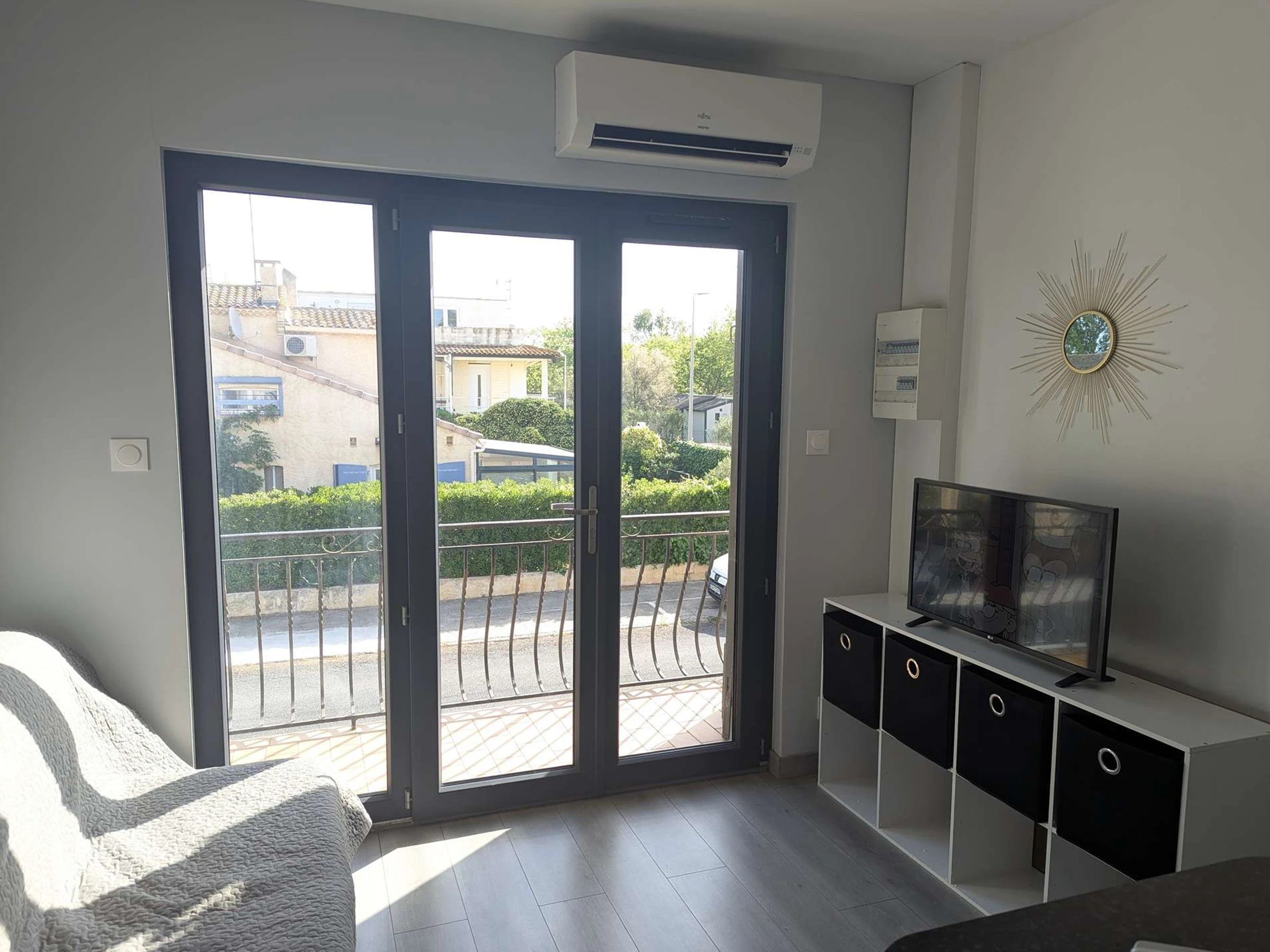 Suchen Sie einen unkomplizierten, angenehmen und stressfreien Urlaub in Marseillan Plage? Dieses Apartment bietet alles für einen gelungenen Aufenthalt. Es befindet sich im ersten Stock eines kleinen Gebäudes, nur wenige Schritte vom Markt entfernt und besticht durch seine ideale Lage: Geschäfte, Strand und Unterhaltungsmöglichkeiten sind in wenigen Minuten zu Fuß erreichbar. Perfekt, um das Auto stehen zu lassen und sich richtig zu entspannen. Im Inneren ist alles auf Ihren Komfort ausgerichtet. Das helle und einladende Wohnzimmer verfügt über ein Schlafsofa, einen Fernseher und eine Klimaanlage – ideal zum Entspannen nach einem Tag in der Sonne. Die offene Küche ist voll ausgestattet und perfekt, um leckere Mahlzeiten zuzubereiten, die Sie anschließend im gemütlichen Essbereich genießen können. Das Schlafzimmer bietet ein Doppelbett und Stauraum. Das moderne und funktionale Badezimmer verfügt über Dusche, Waschmaschine, WC und Stauraum. Für zusätzliche Sicherheit steht Ihnen ein sicherer Parkplatz auf dem Gelände zur Verfügung. Internetzugang ist optional erhältlich. Bitte beachten Sie: Endreinigung, Bettwäsche, Handtücher, Babyausstattung und Kurtaxe sind nicht im Preis inbegriffen.