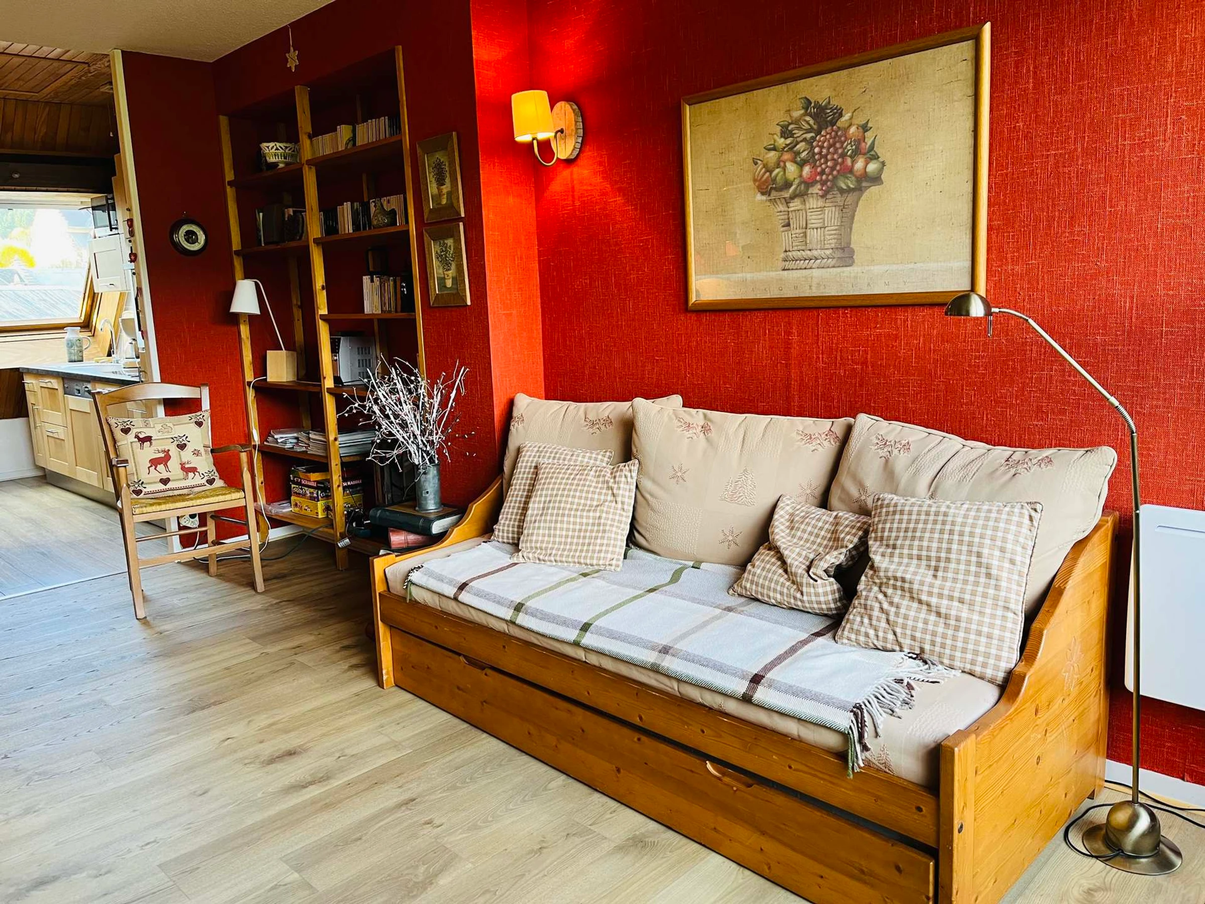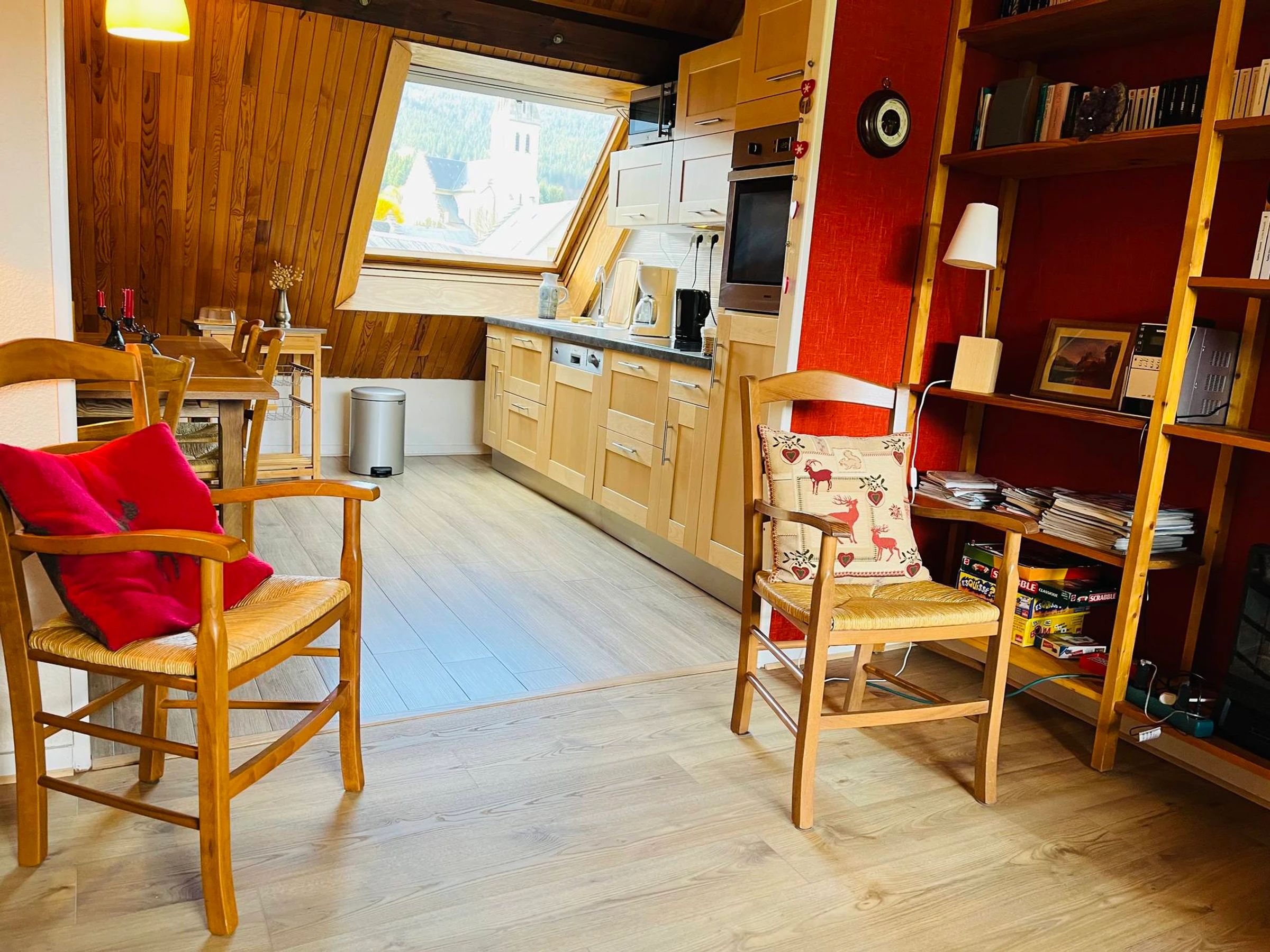 Bergblick, Duplex, Klasse 3*, auf der 4. Etage (oberste Etage) (Aufstieg ab 3. Etage, 15 Märsche), 68 m² groß, mit östlich gelegener Terrasse, im Zentrum des Dorfes gelegen.