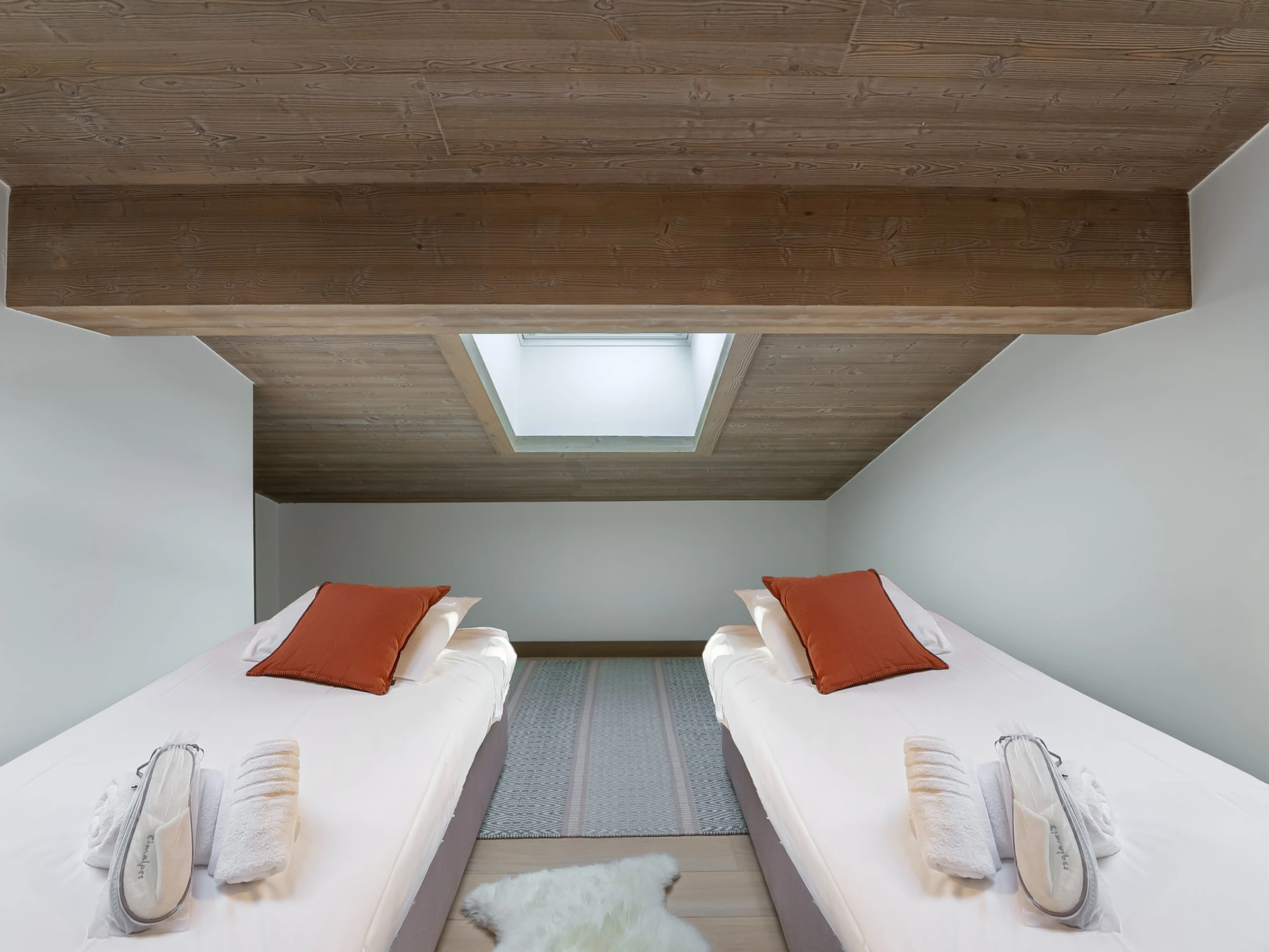 - Kinderzimmer mit zwei Einzelbetten und eigenem Bad (90 x 200 cm)