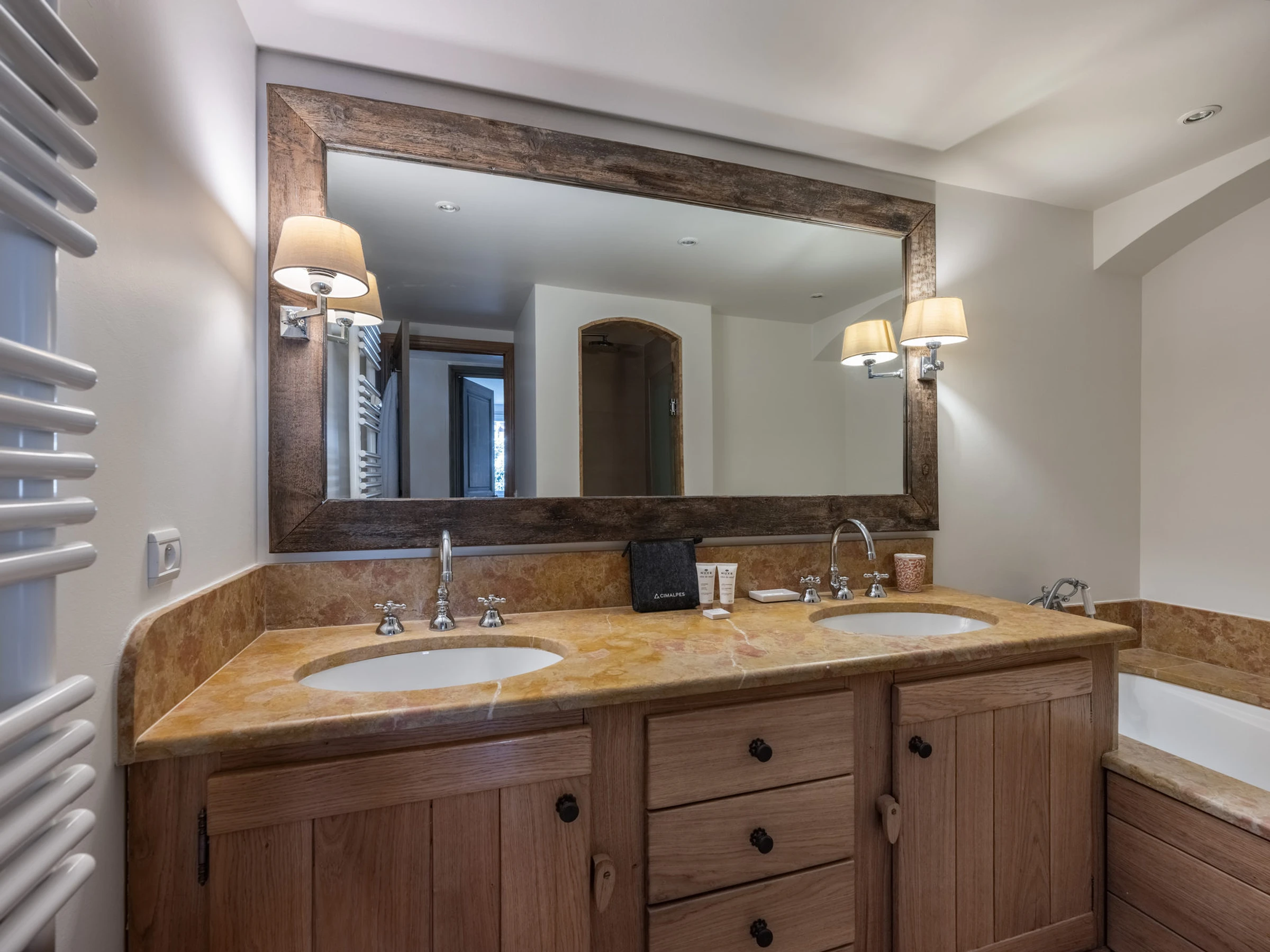 Dieses traditionelle Familienapartment bietet Platz für bis zu acht Gäste in drei Doppelzimmern und einem Kinderzimmer. Die Schlafzimmer sind so gestaltet, dass sie eine wohltuende und entspannende Atmosphäre schaffen – genau das Richtige nach einem langen Tag auf den Pisten des Skigebiets Evasion Mont Blanc.