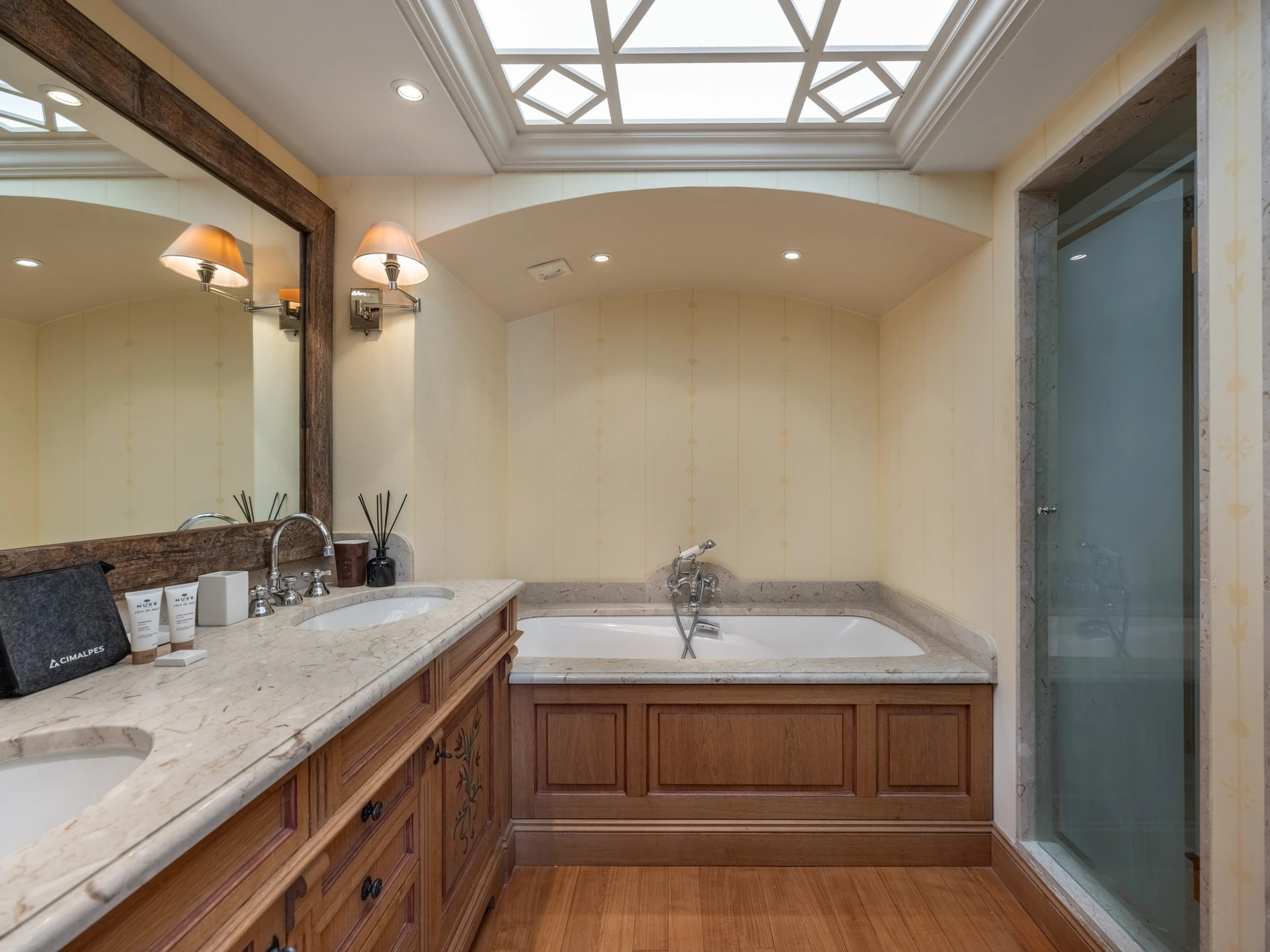 - Hauptschlafzimmer mit einem Bett (180x200), Ankleideraum, Badezimmer (Badewanne, Dusche und WC), Balkon