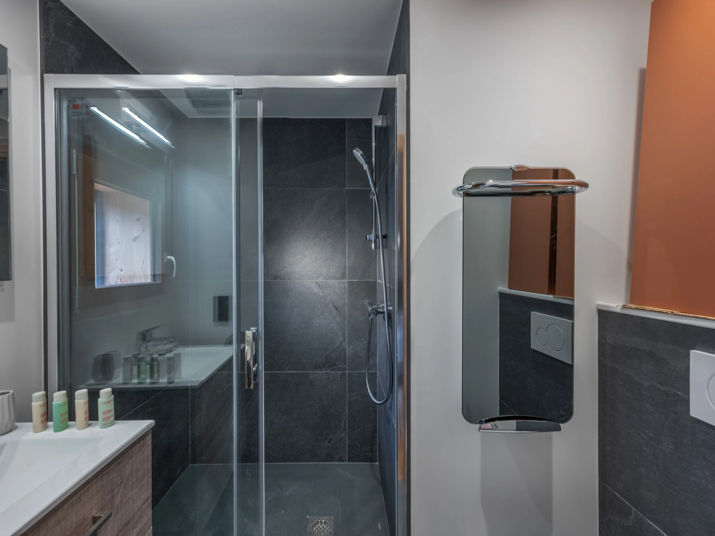 - 1 Doppelzimmer (160 x 200 cm): TV und Duschbad mit WC