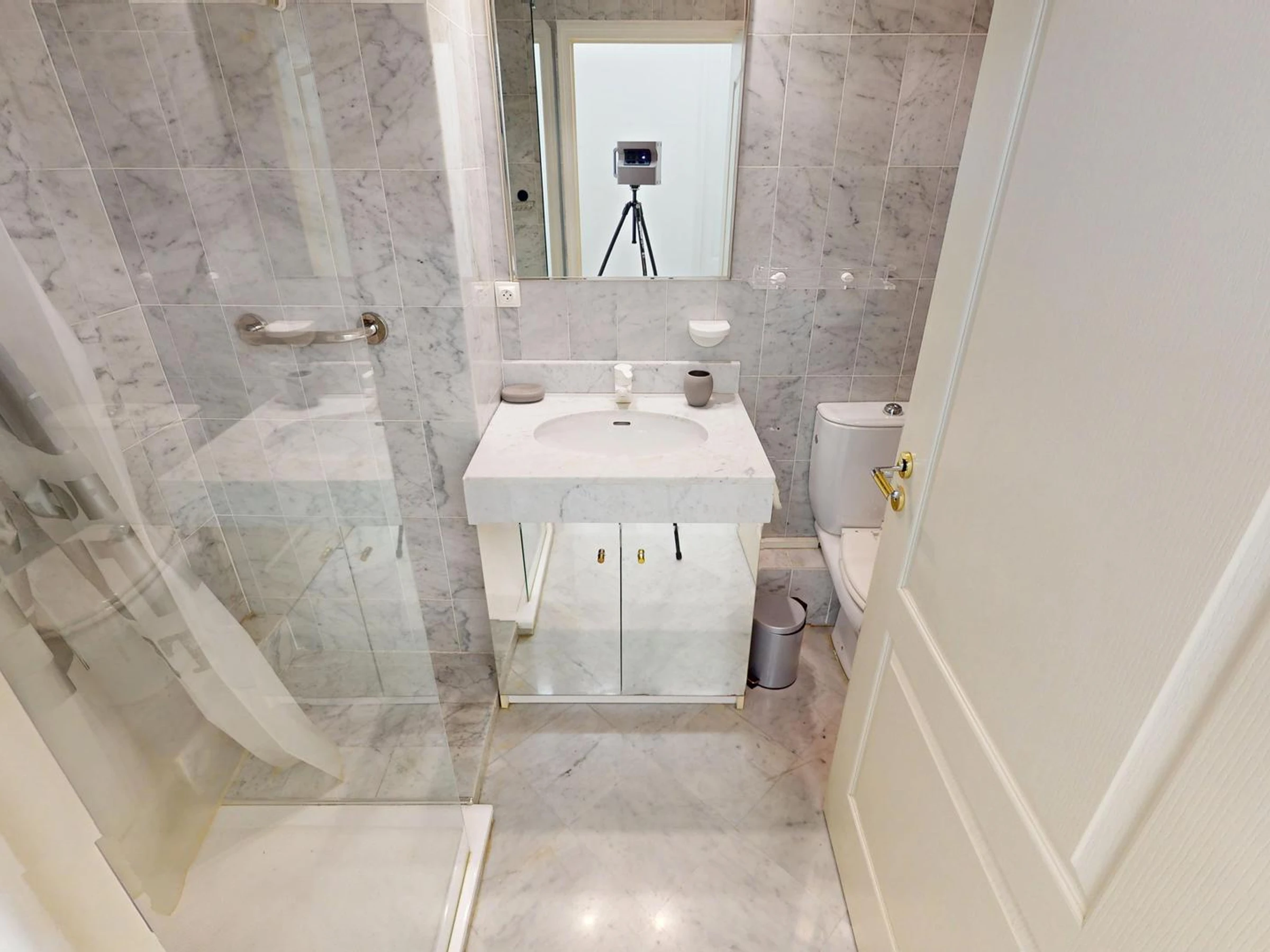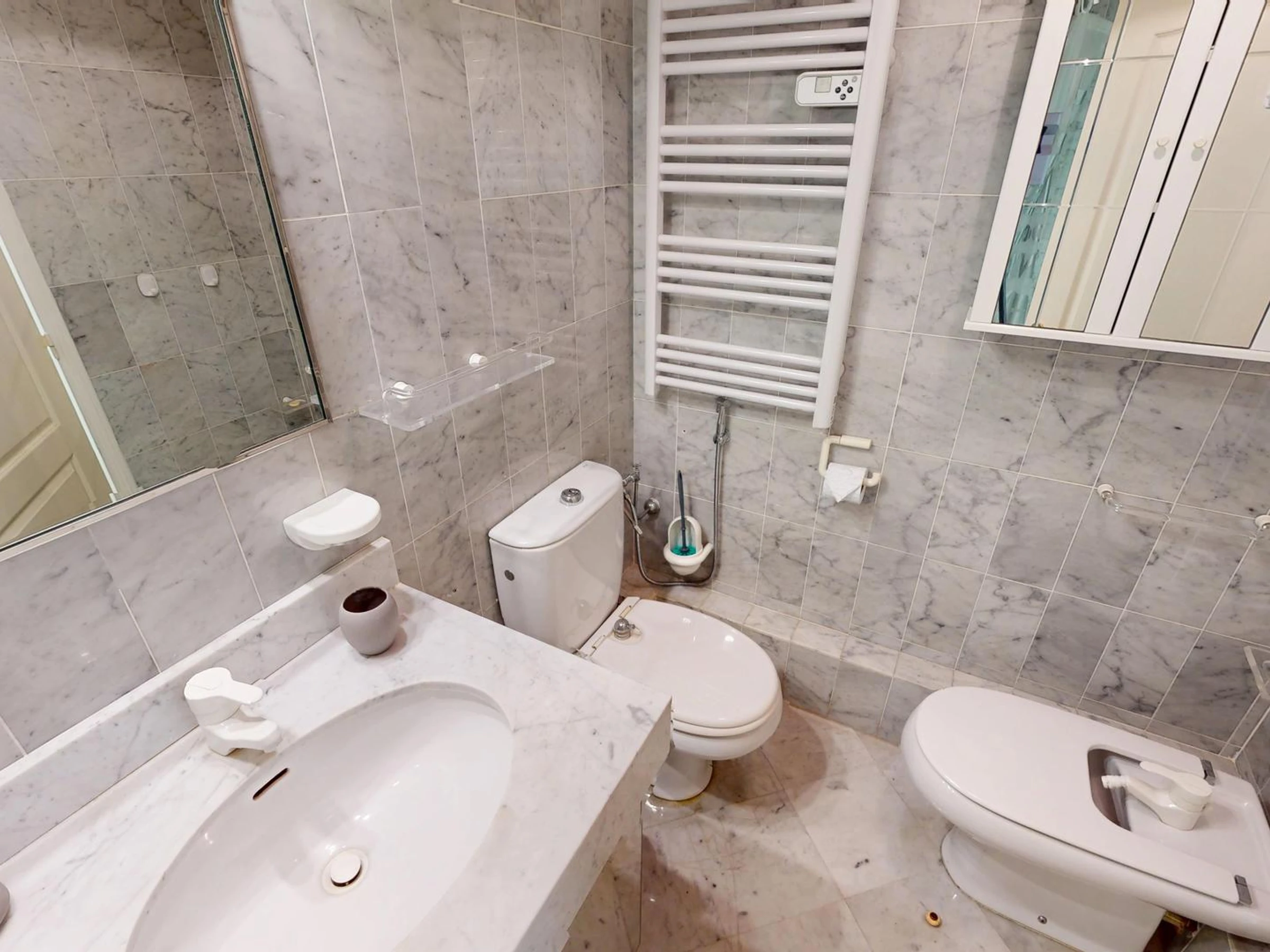 Zweites Badezimmer mit Dusche, WC und Bidet.