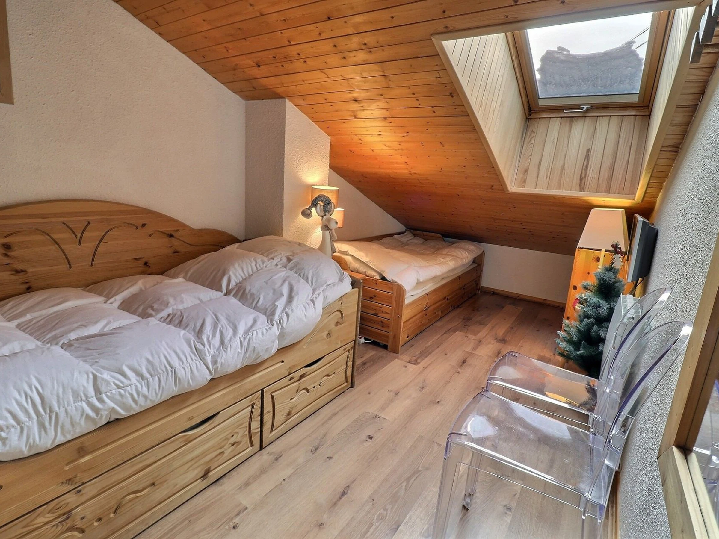 Schlafzimmer 2 mit Dachfenster: 2 Einzelbetten und 1 Ausziehbett (90 x 185 cm)