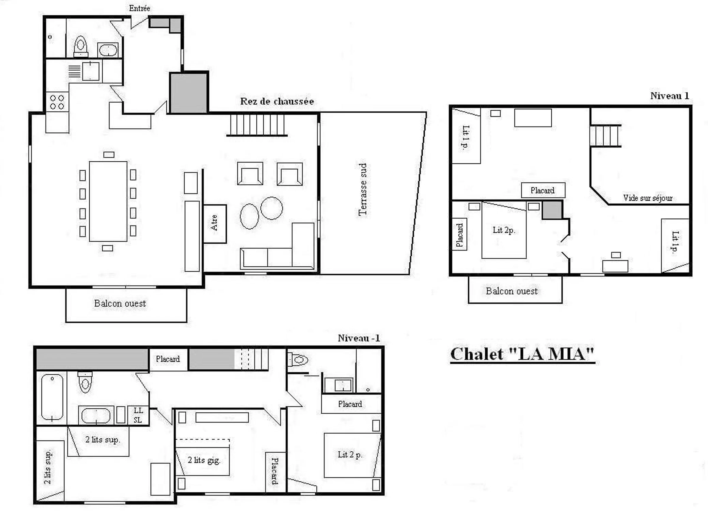 Dieses dreistöckige Chalet wird inklusive Reinigung und Bettwäsche vermietet. Auf der Eingangsebene befinden sich eine voll ausgestattete Küche mit Zugang zum Wohnzimmer mit Essbereich und Zugang zu einem Westbalkon, ein Wohnzimmer mit Chaiselongue-Ecksofa und Kamin, ein Badezimmer und eine Toilette.