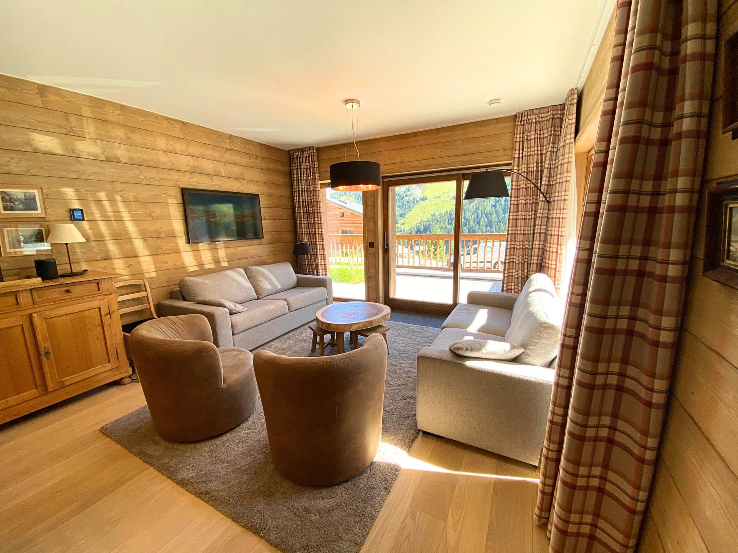 Diese 79 m² große Wohnung bietet Platz für bis zu 7 Personen und befindet sich im Erdgeschoss einer Chalet-Residenz mit schnellem Zugang zu den Pisten und Geschäften (in der Nähe der Zwischenhaltestelle der Fußgängergondel Les Chalets und in der Nähe der kostenlosen Bushaltestelle).