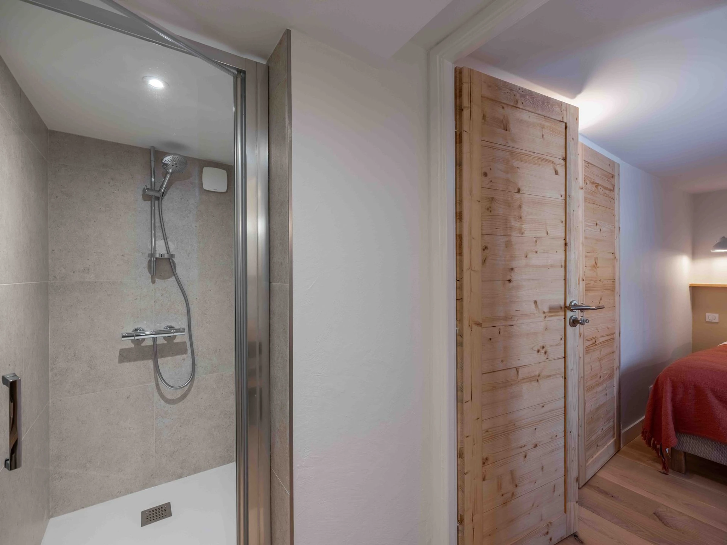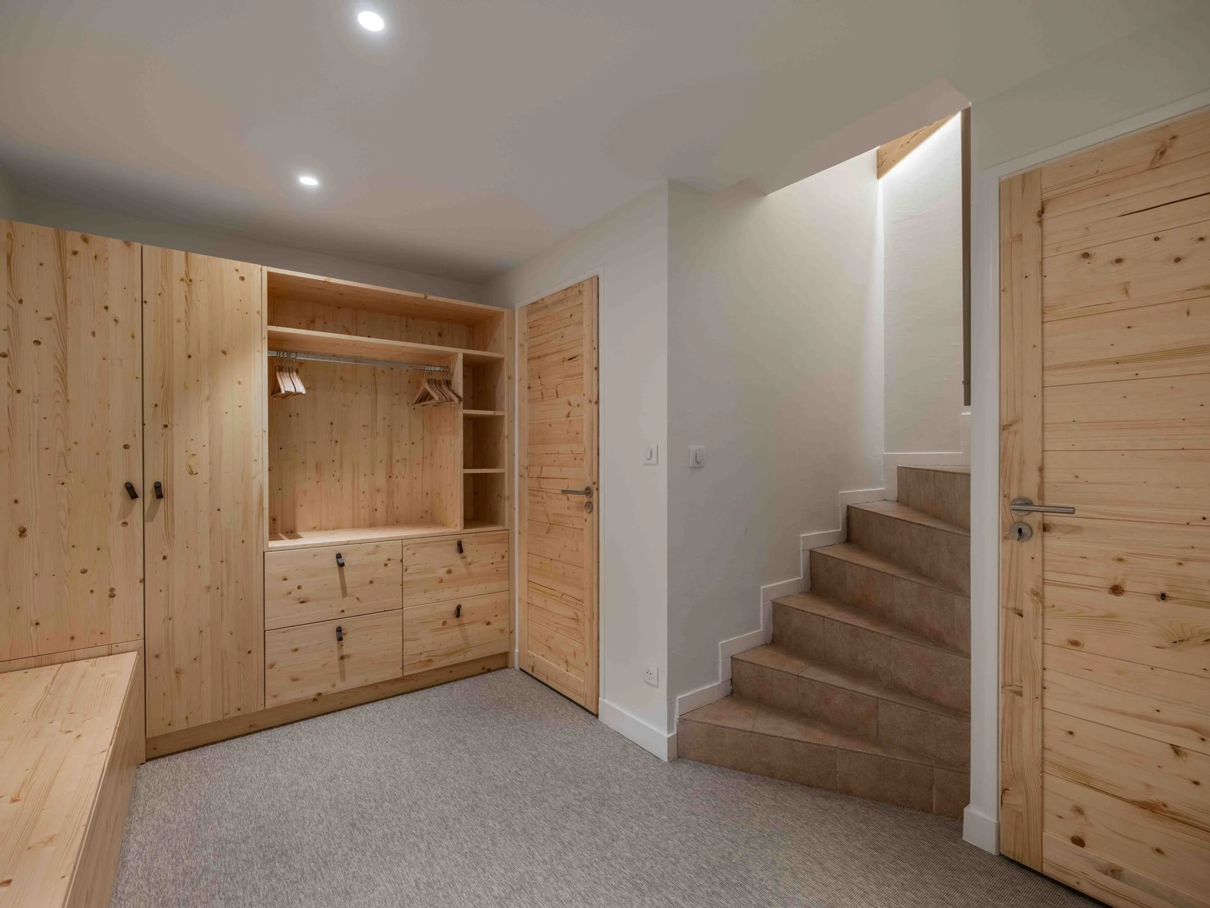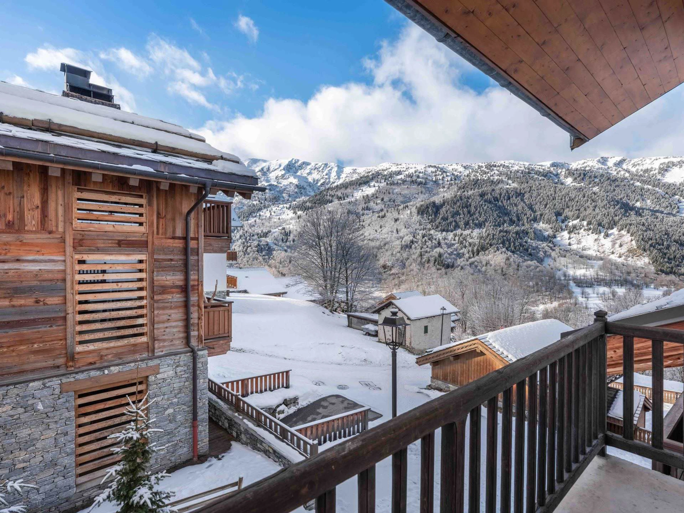Ca. 100 m² großes Ferienhaus für bis zu 8 Personen mit 4 Schlafzimmern und 3 Duschbädern im Dorf Méribel. Das Chalet verfügt über einen Südbalkon.