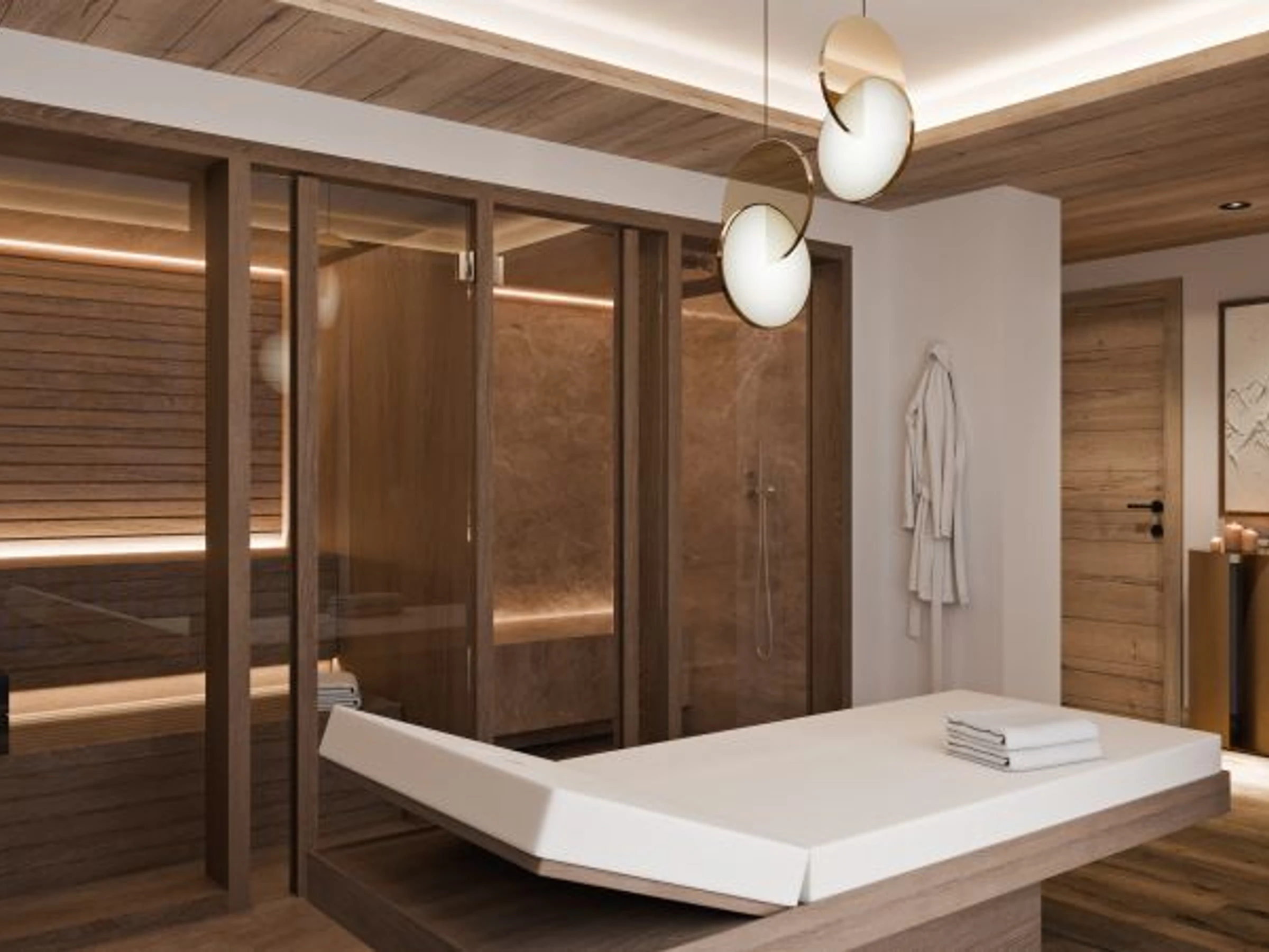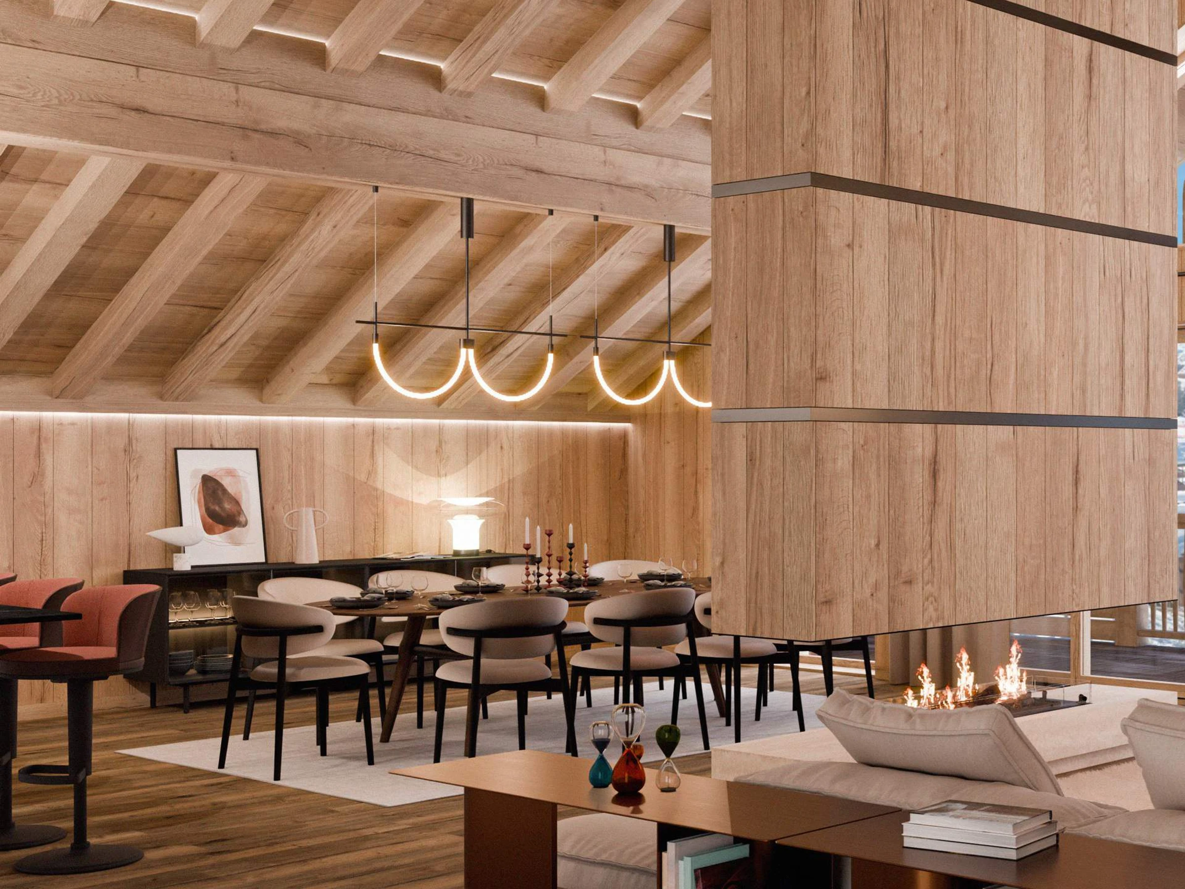 Erbaut aus edlen Naturmaterialien, verbindet es die warme Atmosphäre eines traditionellen Chalets mit dem Komfort eines modernen Luxusapartments.