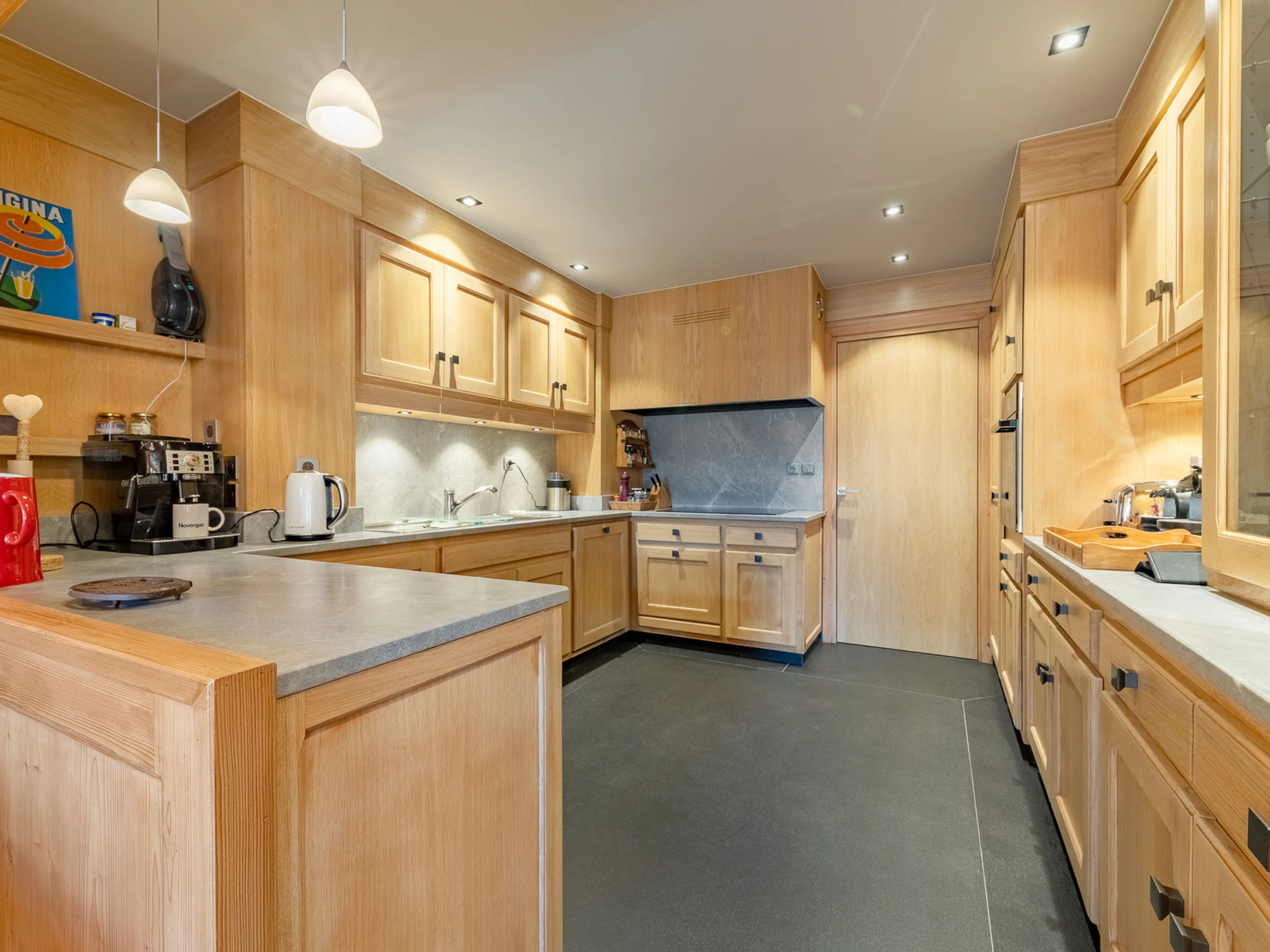 Voll ausgestattete Küche: Induktionskochfeld, Kühlschrank, Geschirrspüler, Backofen, Mikrowelle, Filterkaffeemaschine, Nespresso-Maschine, Wasserkocher, Raclette- und Fondue-Sets.