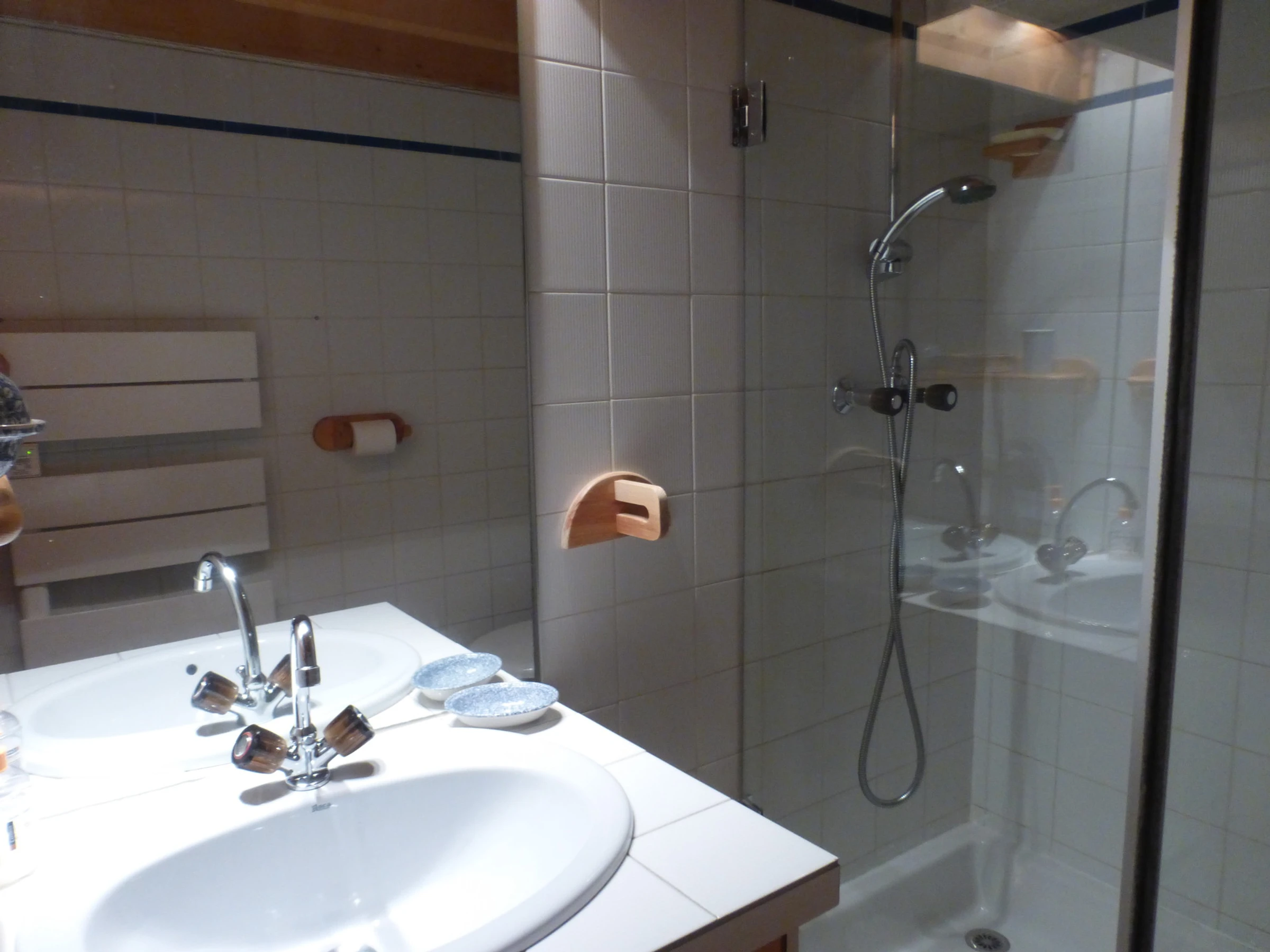Es gibt ein Badezimmer mit Badewanne und ein Duschbad mit WC.