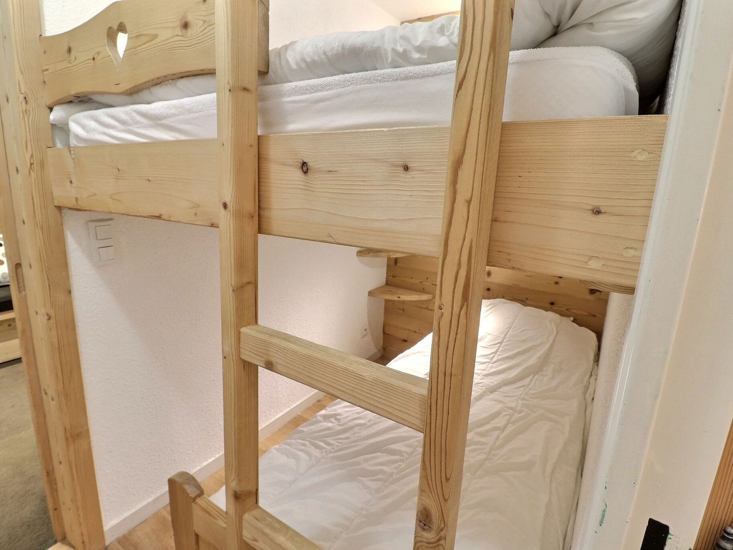 Schlafbereich mit einem Etagenbett (oben Doppelbett: 135 x 180 cm, unten Einzelbett: 80 x 190 cm)