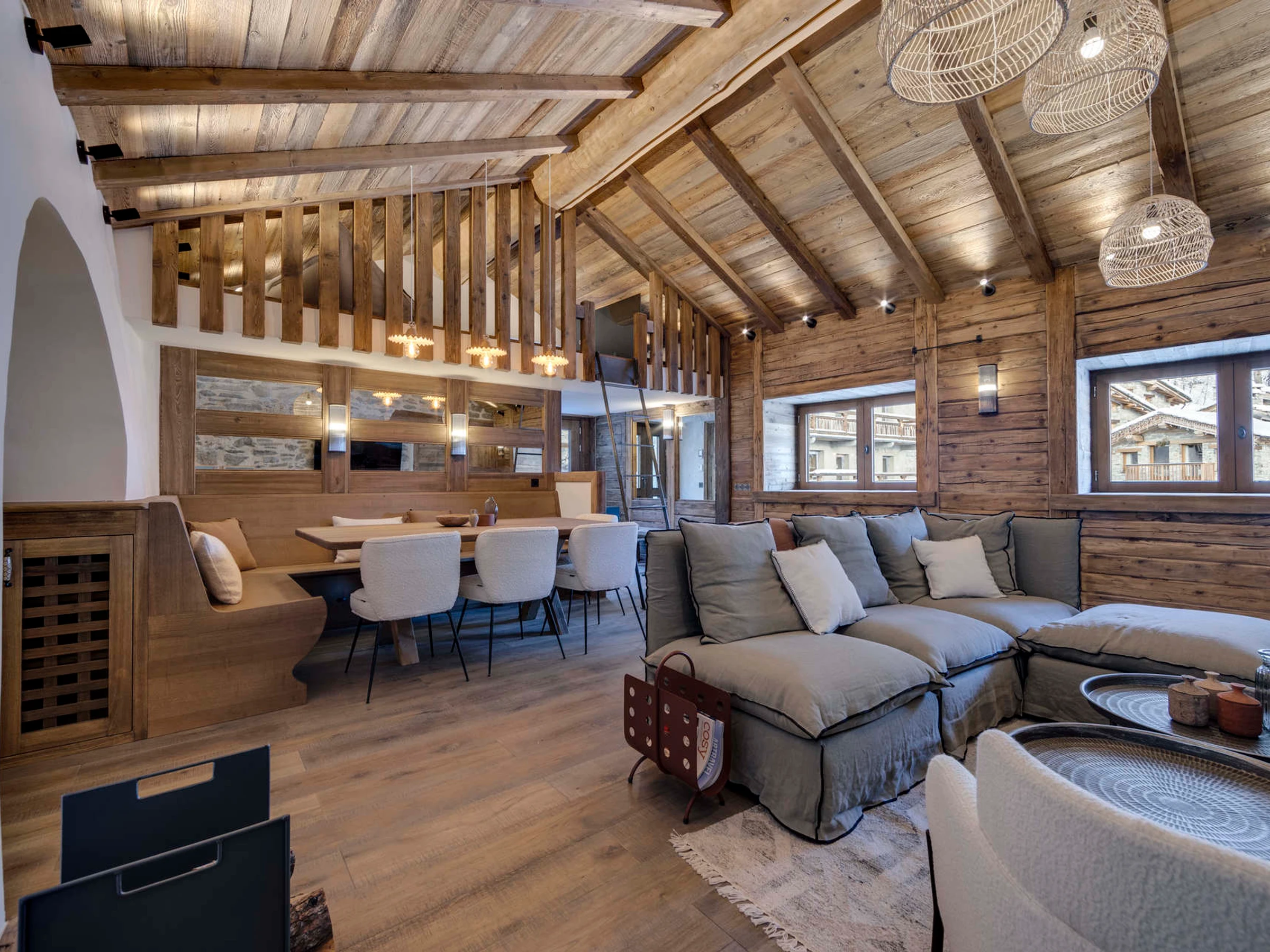 Das Chalet EDEL mit ca. 157 m² Wohnfläche bietet 5 Schlafzimmer für bis zu 10 Personen. Es befindet sich im Weiler Raffort, nur 145 Meter von der kostenlosen Bushaltestelle entfernt, die direkt ins Zentrum von Méribel fährt. Die Gondelbahn Olympe, die Sie direkt zur Piste von Méribel bringt, ist ebenfalls in der Nähe.