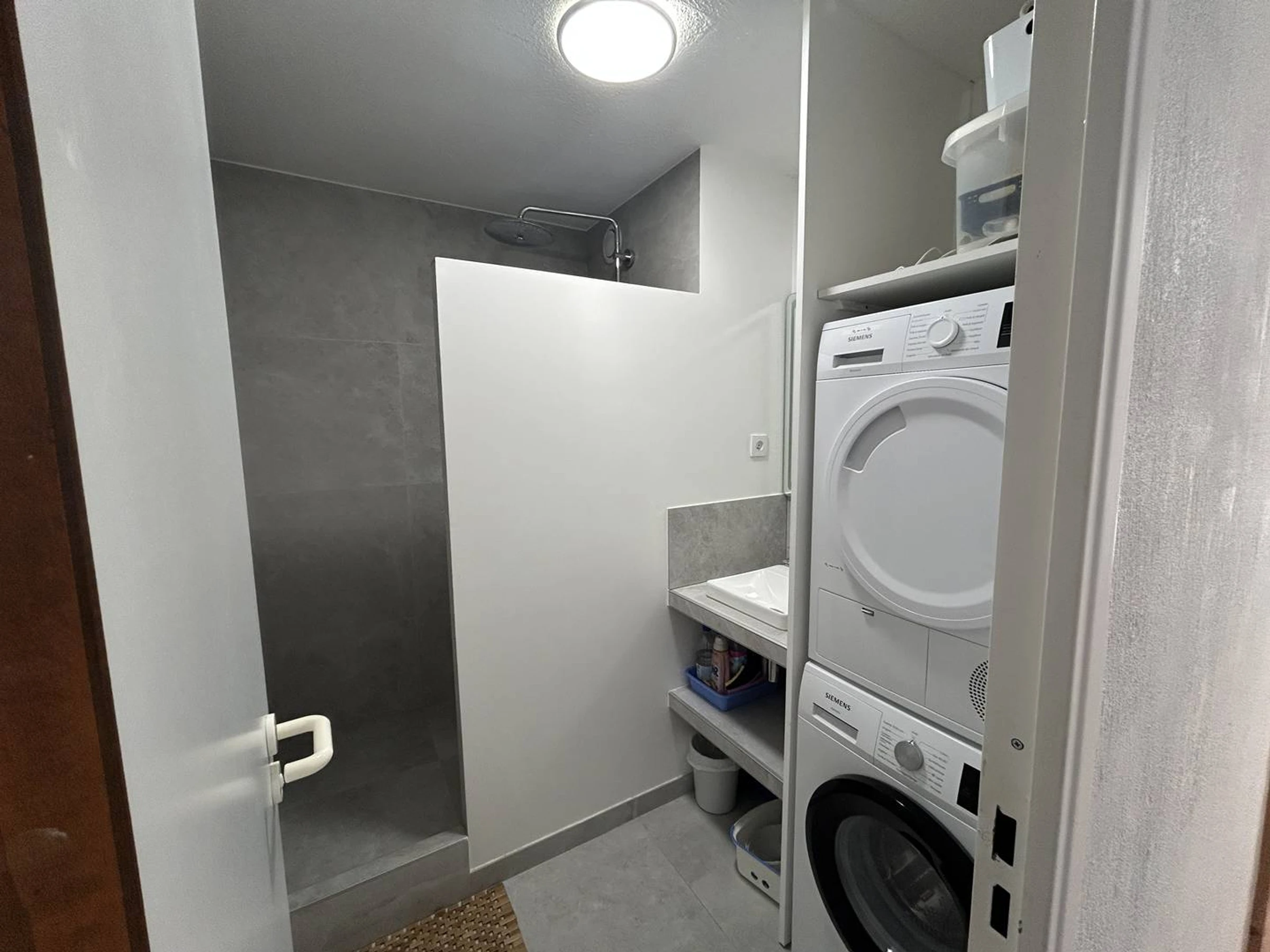 Ein zweites Badezimmer mit Waschmaschine und Trockner sowie ein separates WC vervollständigen die Unterkunft. In einem der oberen Stockwerke gelegen und bequem mit zwei aufeinanderfolgenden Aufzügen erreichbar, bietet diese Wohnung viel Platz, Komfort und eine fantastische Aussicht.