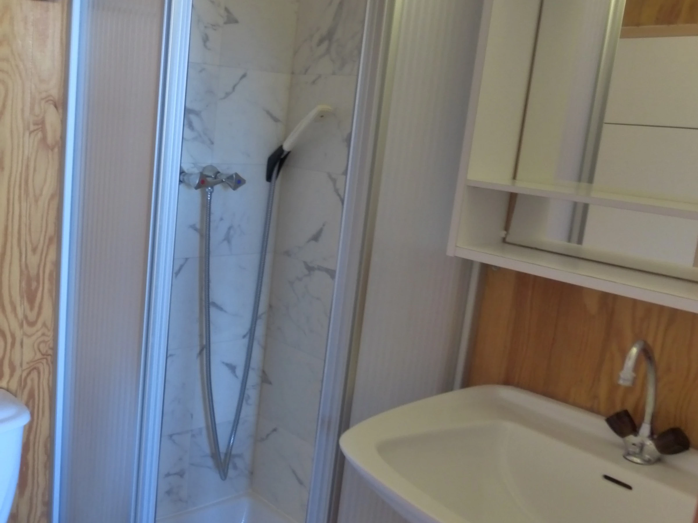 Sanitärausstattung: Das Studio verfügt außerdem über ein eigenes Badezimmer mit Dusche und WC.