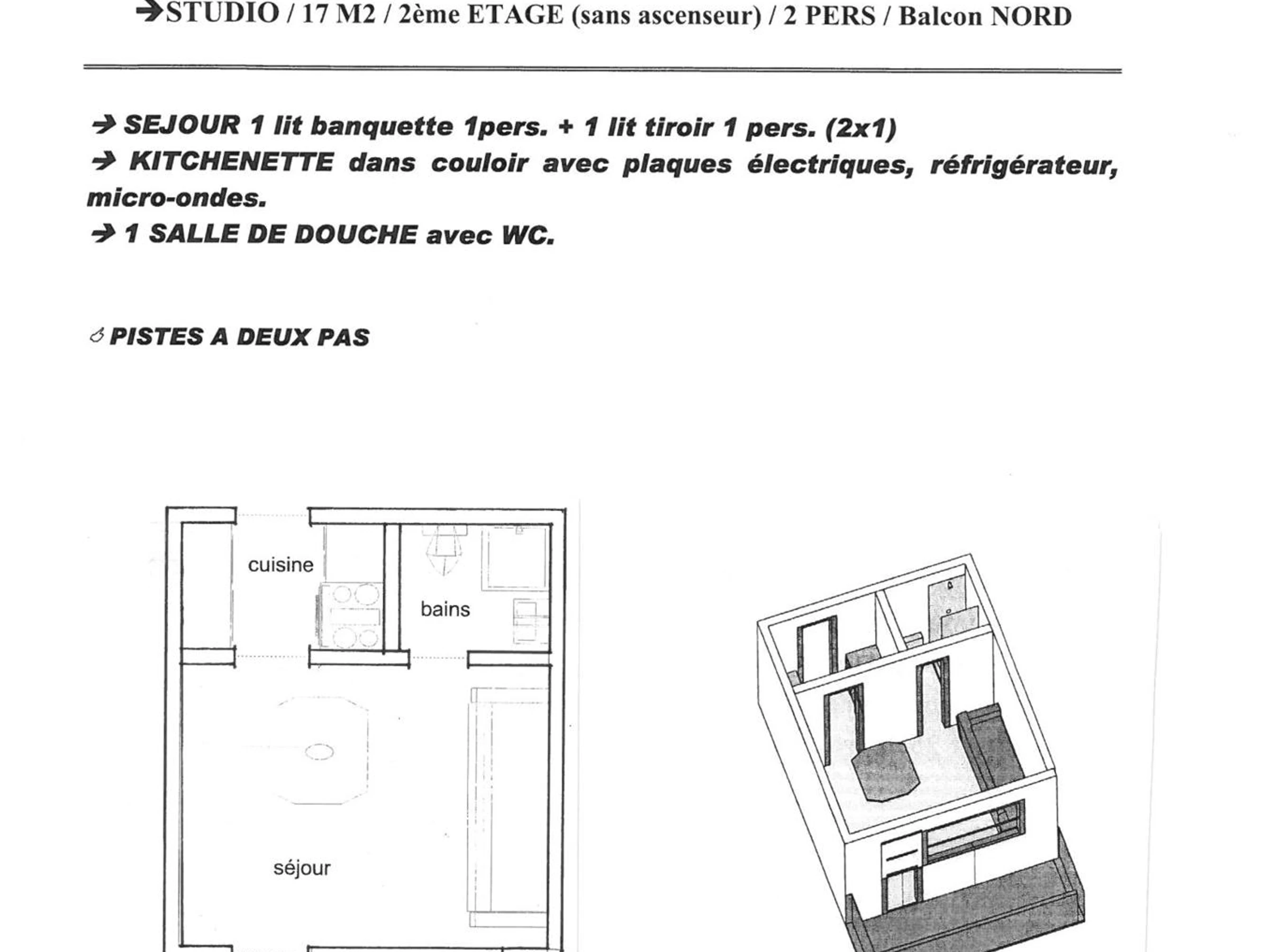 Das Studio für 2 Personen befindet sich im 2. Stock eines Hauses ohne Aufzug und ist mit einem Stern (1*) ausgezeichnet.