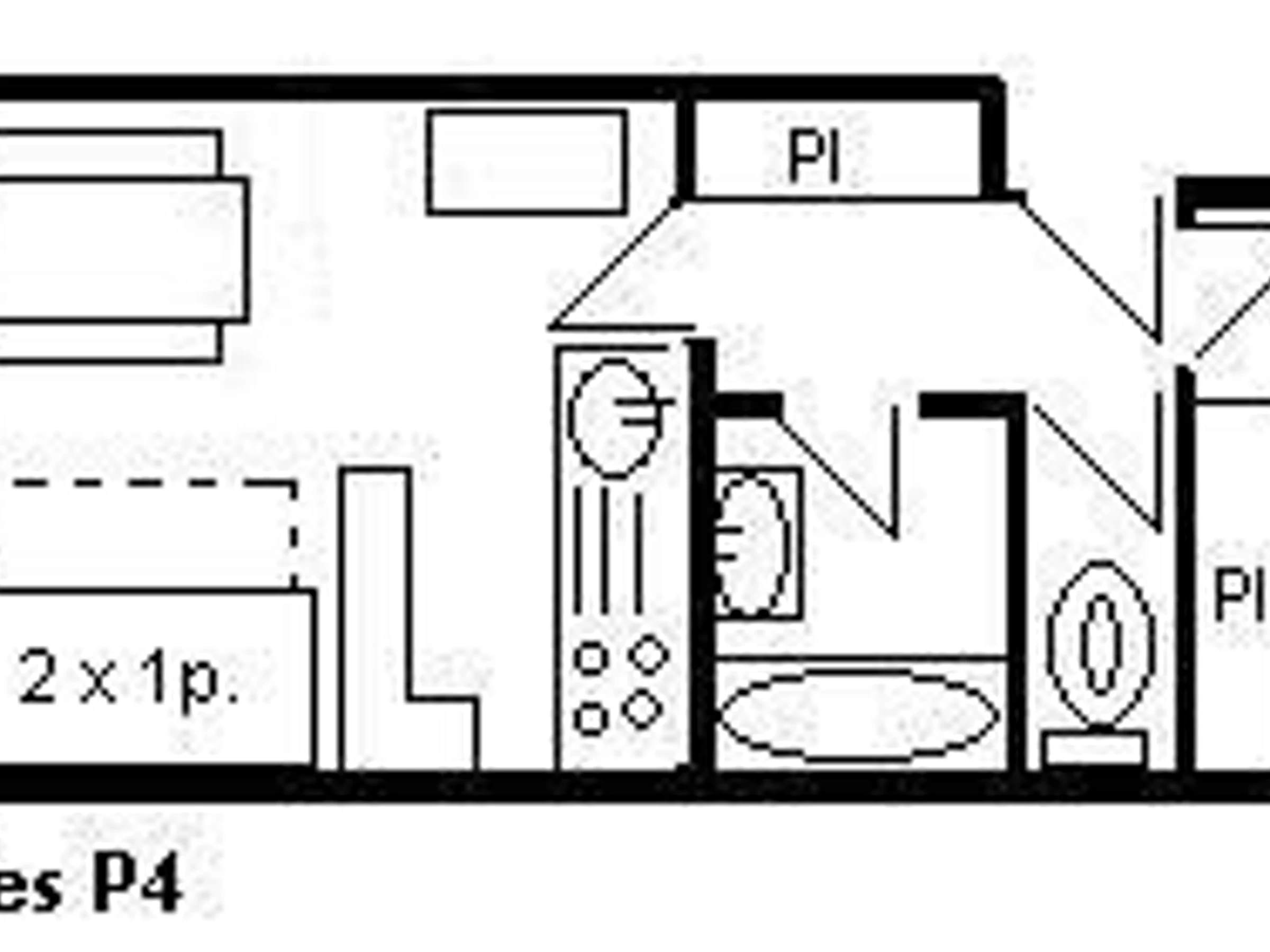 Dieses mit dem Aufzug erreichbare Apartment befindet sich im ersten Stock der Residenz. Es verfügt über eine voll ausgestattete Küche mit Zugang zum Wohnzimmer mit zwei ausziehbaren Betten (80 x 190 cm Matratzen) und einem Fernseher mit integriertem DVD-Player, ein Schlafzimmer mit zwei Einzelbetten (80 x 190 cm), ein Badezimmer und ein separates WC. Ein Skischrank befindet sich am Eingang der Residenz.