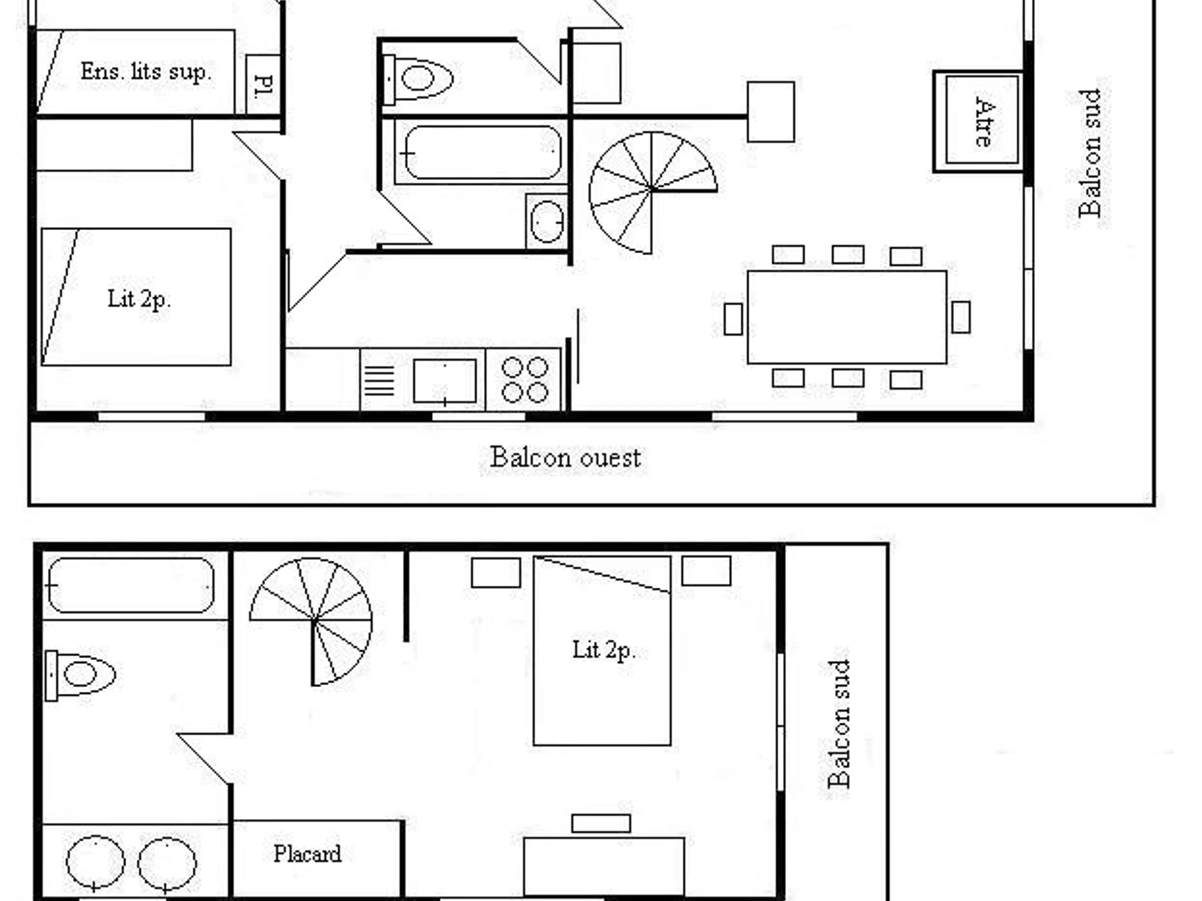 Dieses Bergapartment am Eingang der Residenz mit Aufzug besteht im Erdgeschoss aus einem großen Wohnzimmer mit Süd-/Westbalkon, Kamin und Fernseher, einer voll ausgestatteten Küche, einem Schlafzimmer mit zwei Etagenbetten, einem Schlafzimmer mit einem Doppelbett (140 cm), einem Badezimmer und einem separaten WC mit Waschbecken.