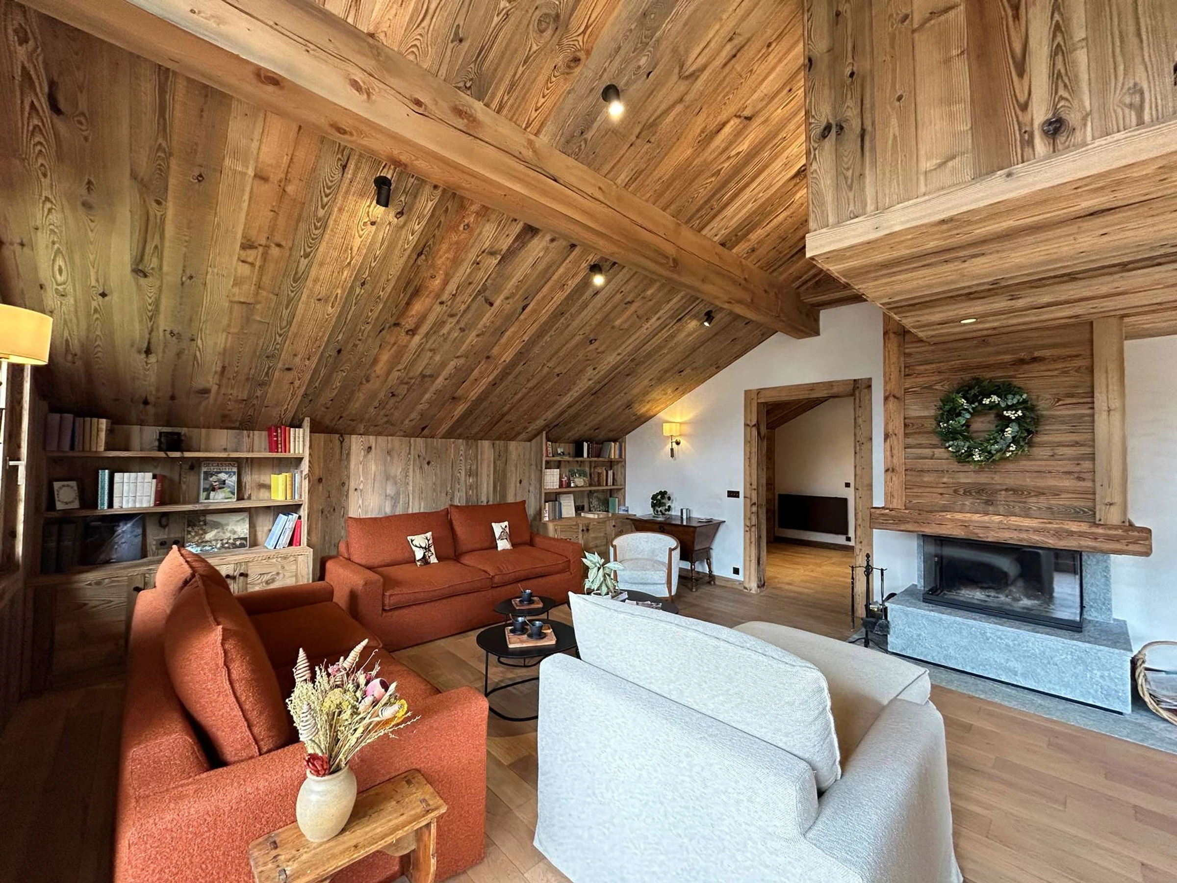Anschließend entdecken Sie ein wunderschönes, sehr warmes Wohnzimmer mit einer geräumigen und modernen, zum Wohnzimmer offenen Küche und einem sehr freundlichen Essbereich, 2 Lounges mit zentralem Kamin. Dieses prächtige Chalet bietet Ihnen die perfekte Umgebung, um mit Ihren Lieben am Feuer zu entspannen, die Aussicht nach Süden und Westen mit diesen hübschen Bergen zu bewundern und das „Nordische Bad“ zu genießen, ein unbeschreibliches Wohlbefinden, das Sie nach einem schönen Tag ausprobieren können Skifahren! Im Obergeschoss finden Sie ein Schlafzimmer mit einem 180 x 200 cm großen Doppelbett und angrenzendem Badezimmer sowie einer separaten Toilette. Auf Level -1 werden Sie Folgendes entdecken: