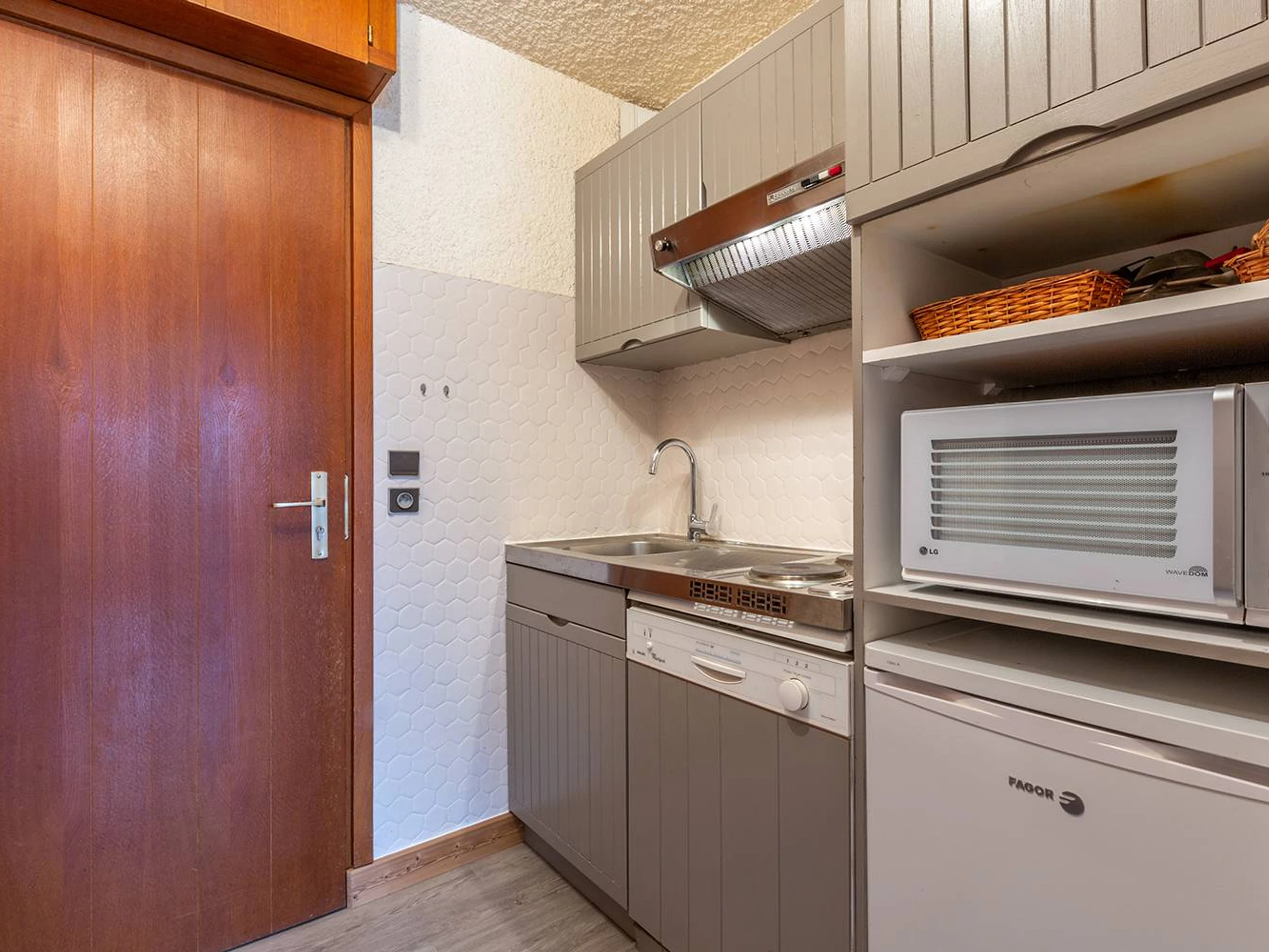 Wohnzimmer mit Schlafsofa (140x190) und Fernseher. Zimmer mit 3 Etagenbetten (80x190). Kochnische im Eingangsbereich ausgestattet mit Kochplatten, Mikrowelle, Geschirrspüler, Wasserkocher, Kaffeemaschine, Toaster und Kühlschrank. Badezimmer mit Toilette. Balkon nach Süden ausgerichtet. Nichtraucherwohnung. Skiraum und Lift in der Residenz. Befindet sich im 3. Stock. Haustiere nicht erlaubt.