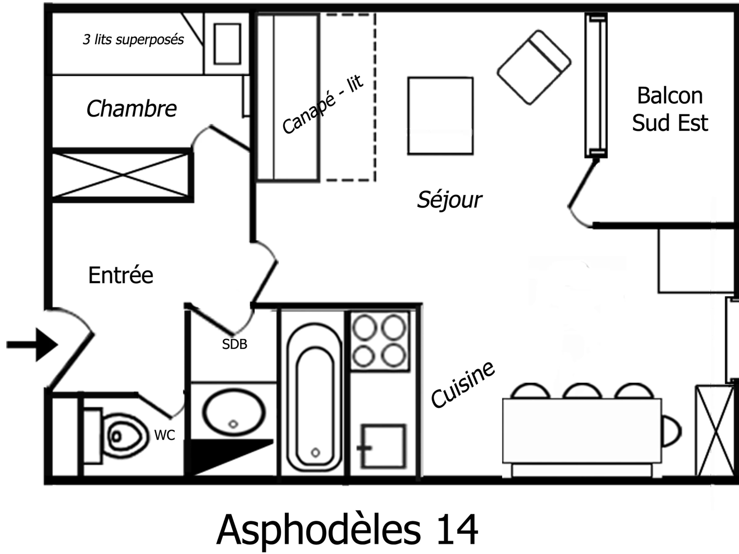 Die Residence Asphodèles liegt 200 m von den Pisten entfernt und auf halbem Weg zu den beiden Einkaufszentren: in Le Hameau und im Zentrum.