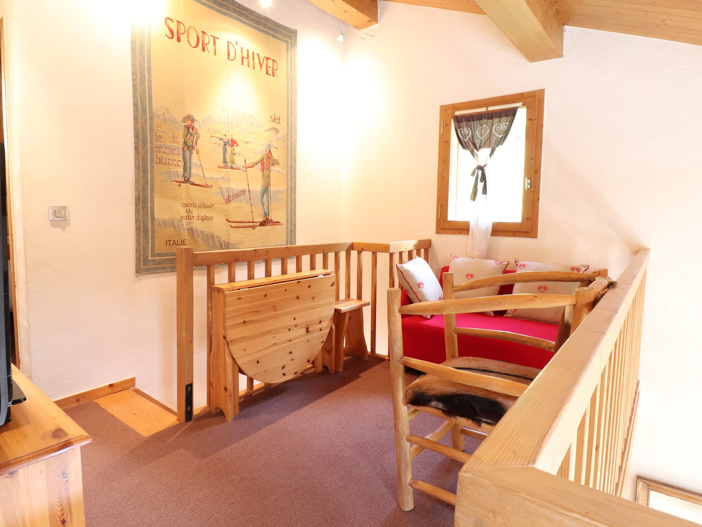 Über dem Wohnzimmer offene Galerie 1 Doppelbett (140 x 190 cm), festes Dachfenster und eine TV-Ecke