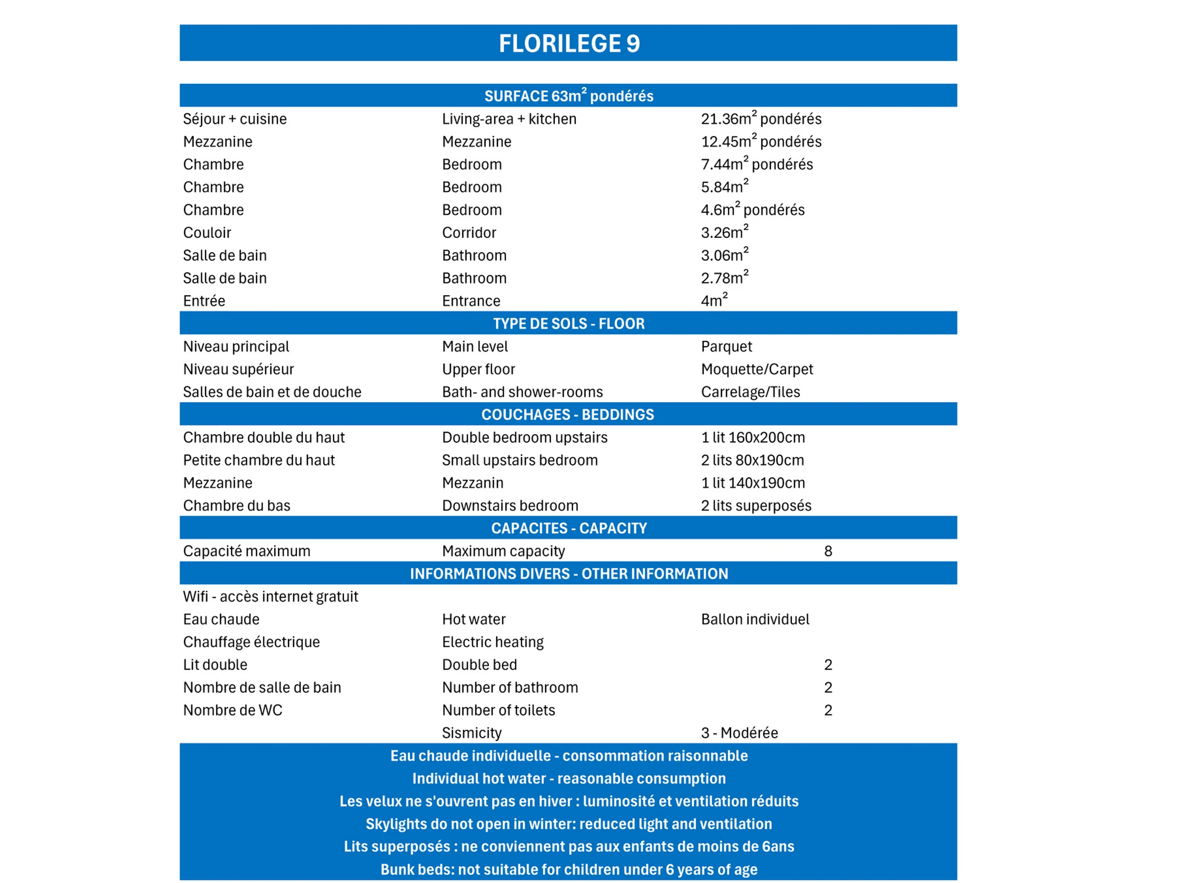 . Kinderstuhl : 20.0 € pro Aufenthalt